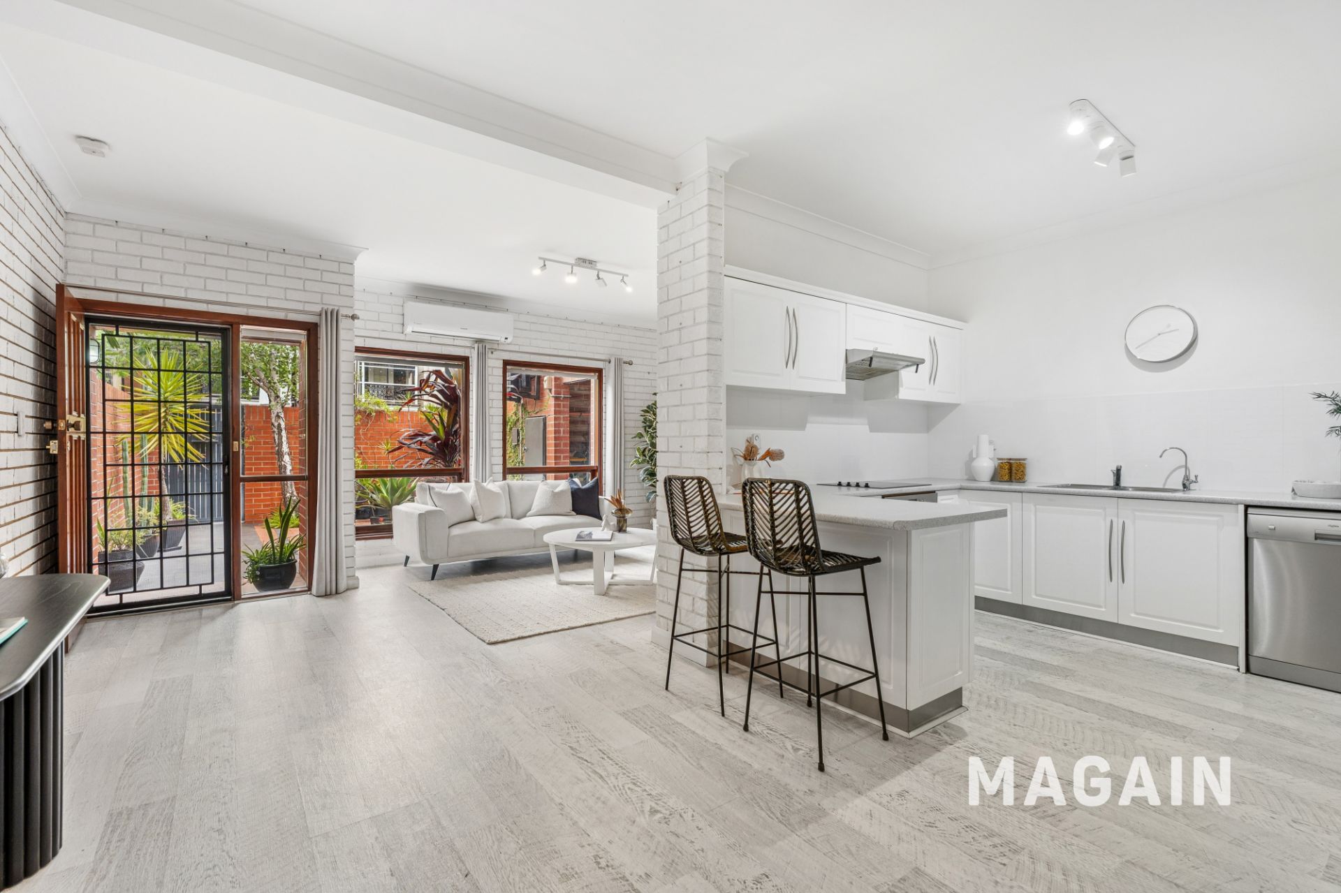 There's plenty of aesthetically pleasing interior style with a combination of subtle ash toned, timber-look floors and crisp white walls. While two split system air-conditioners provide heating and cooling in both the living room and bedroom.