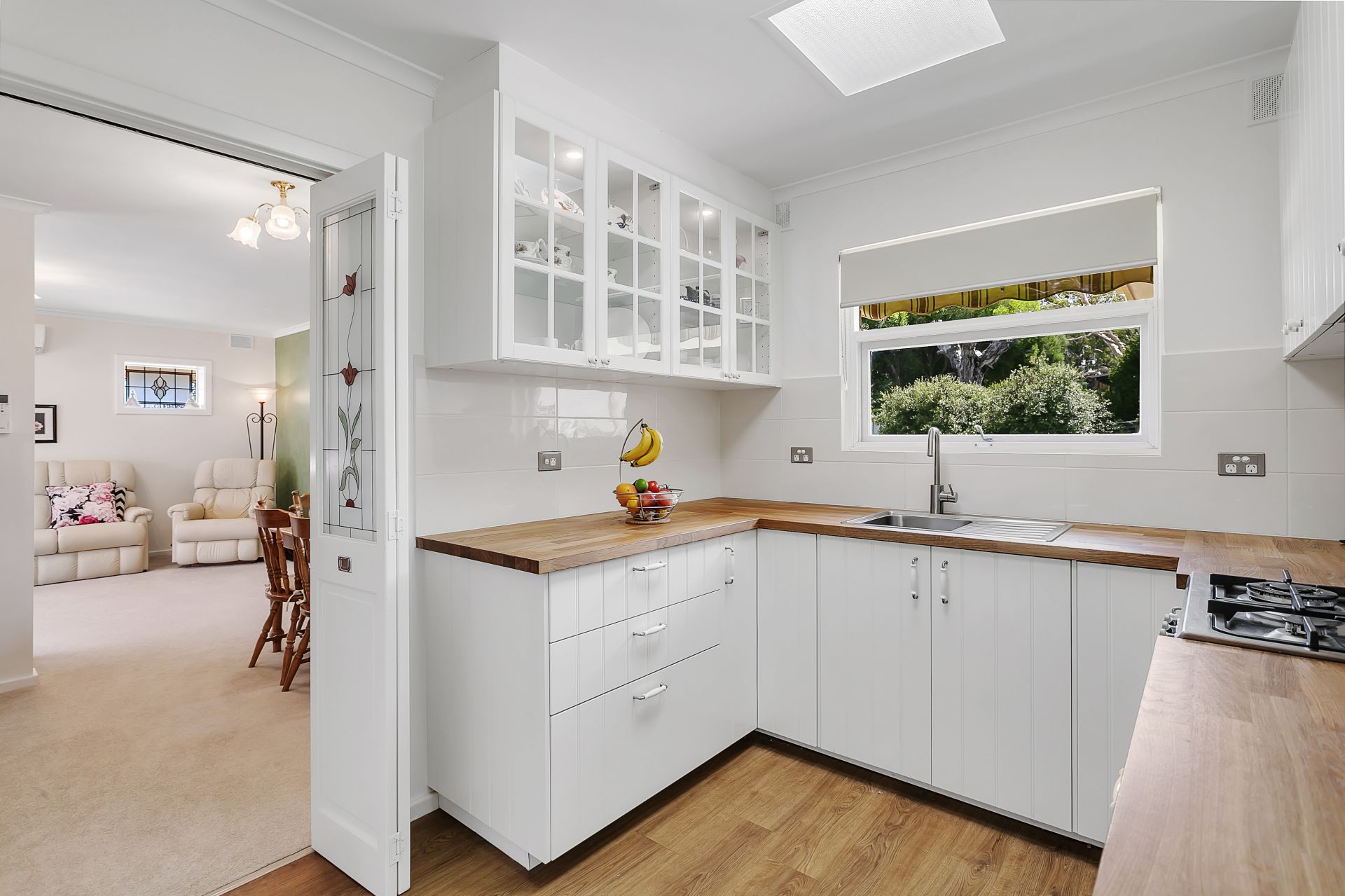 > newly renovated country style kitchen, with oak wooden bench tops, is a dream to cook in and offers plenty of storage