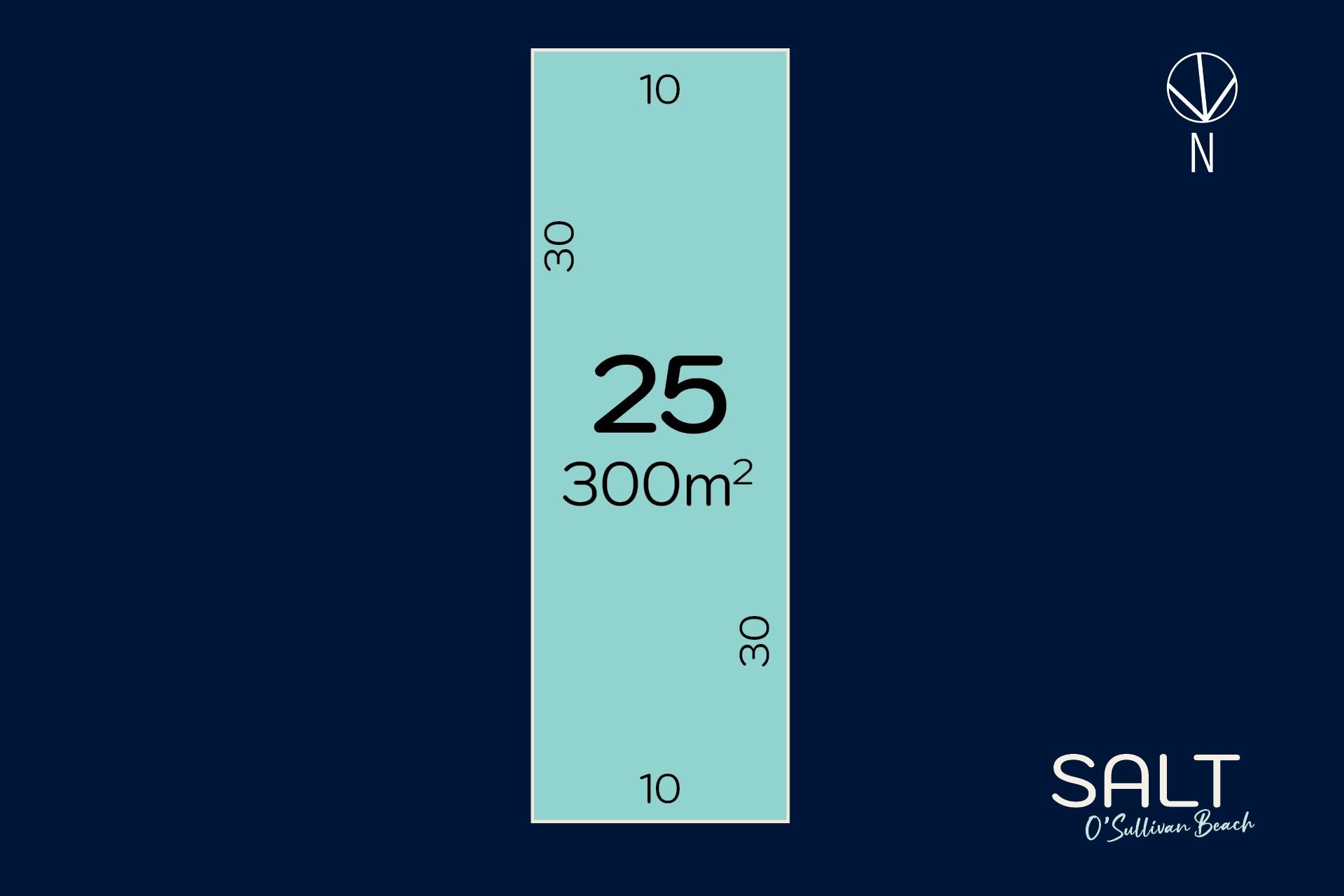 Don't miss this exclusive opportunity to secure Lot 25, a 300sqm block in the highly sought-after Salt O'Sullivan Beach community. With a 10m frontage and 30m depth, this lot provides the perfect space to design a stunning coastal home with modern living in mind.