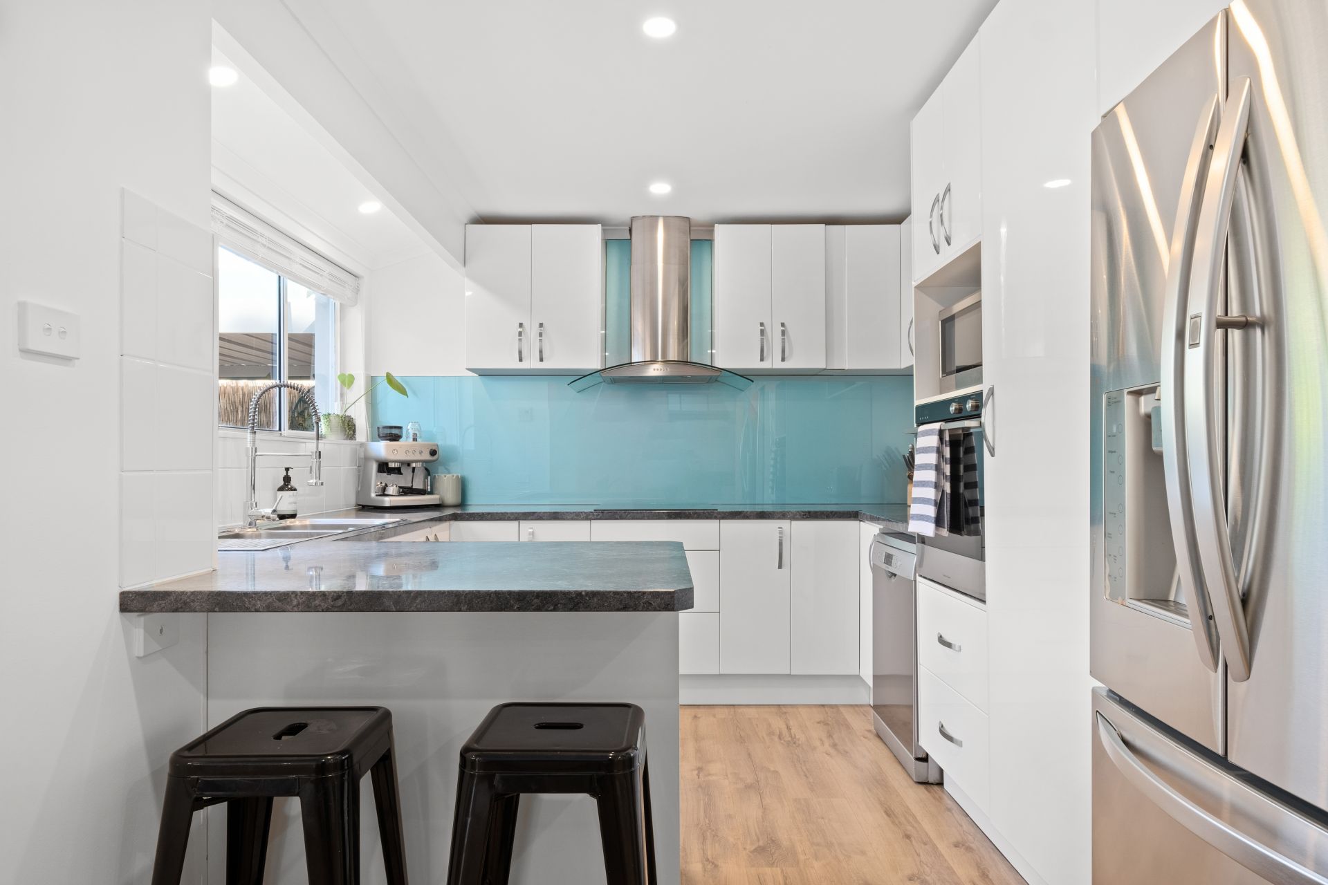 The impressive gourmet kitchen has been beautifully appointed with quality bench tops, and modern stainless steel appliances including an induction cooktop, and dishwasher, while a linen cupboard found here provides valuable extra storage space to the home.