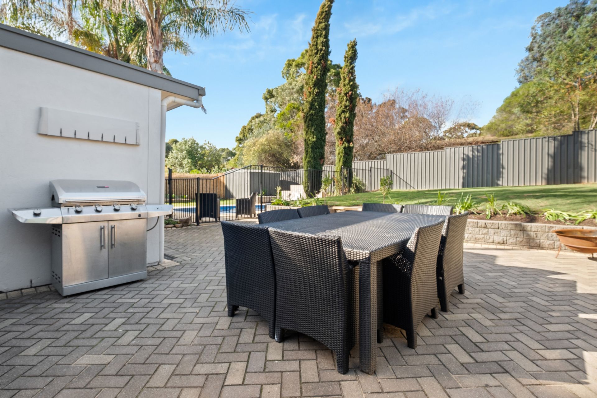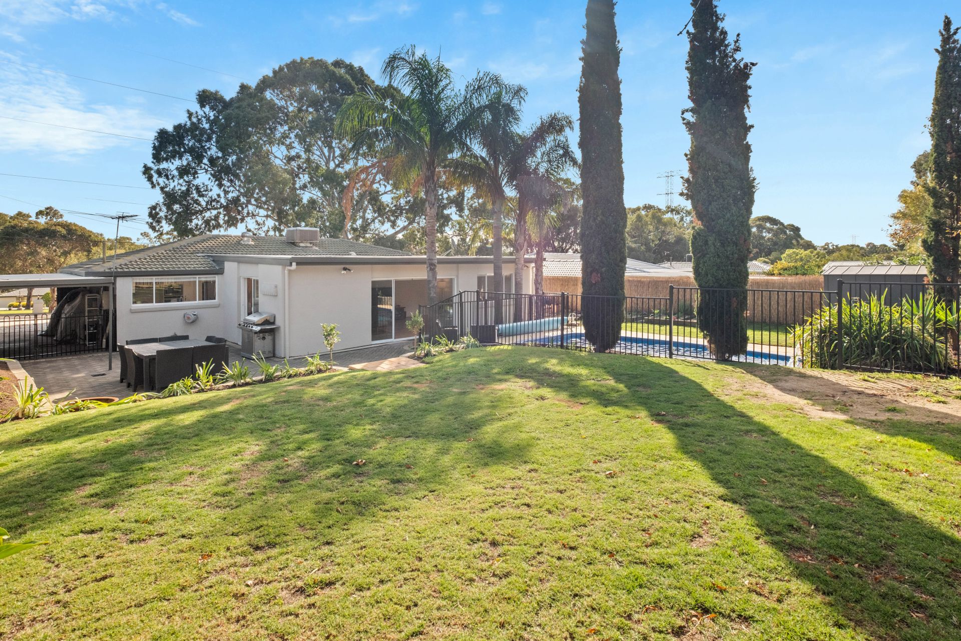 Glass sliding doors provide a picturesque view and seamless access to the rear yard where you will find an entertainer's paradise featuring an in-ground swimming pool overlooked by the paved entertaining area. A separate paved section featuring a built-in bar and covered by a skillion roof pergola, makes a fantastic external living area that will be used throughout the seasons.