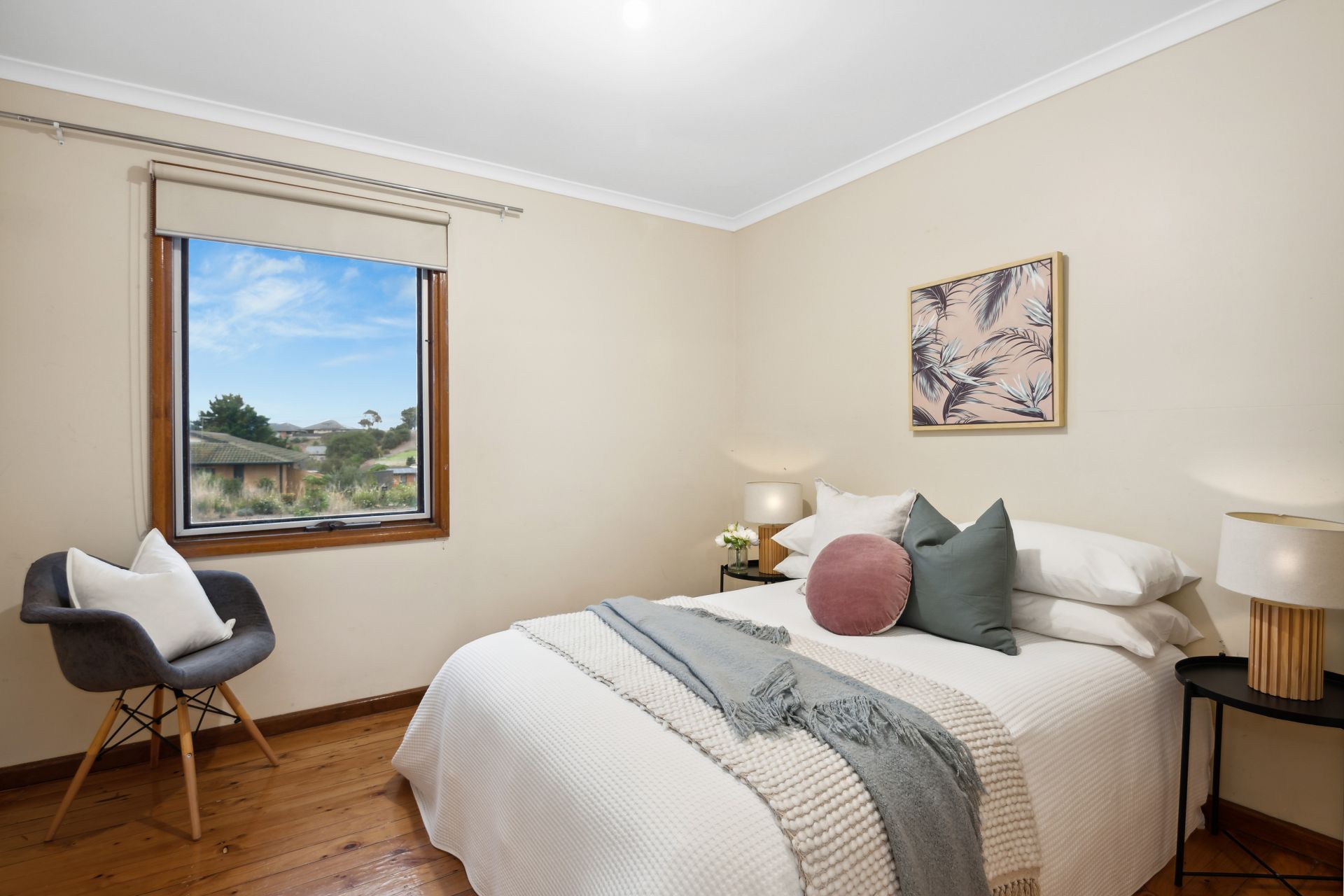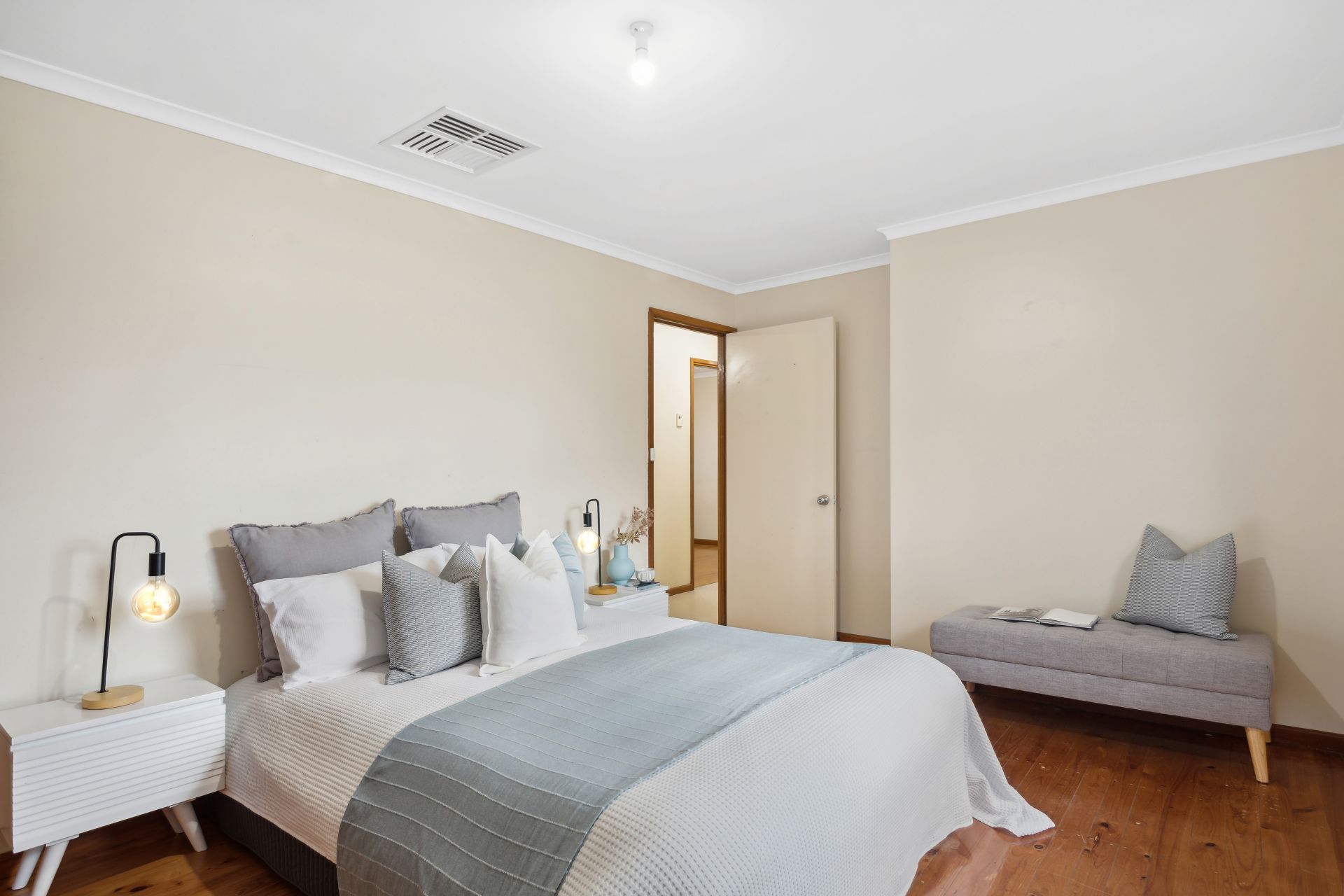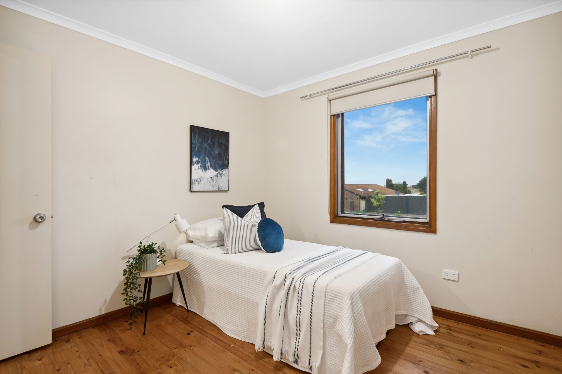 A front porch welcomes you inside, revealing a spacious lounge room which is large enough to relax with the whole family or play host to your beloved guests, featuring polished timber floors and a split system air-conditioner that will keep it comfortable year-round. The light and bright kitchen is designed with both functionality and style in mind boasting an electric cooktop and oven, ample bench space and storage allowing you to effortlessly whip up culinary delights. Natural light pours in through the windows, creating an airy and welcoming atmosphere. All three bedrooms have polished timber floors and easy access to the central bathroom with step-in shower, bath, vanity and a separate toilet to accommodate busy households. Additional features include ducted evaporative cooling throughout, a separate laundry, multiple storage cupboards and solar panels.