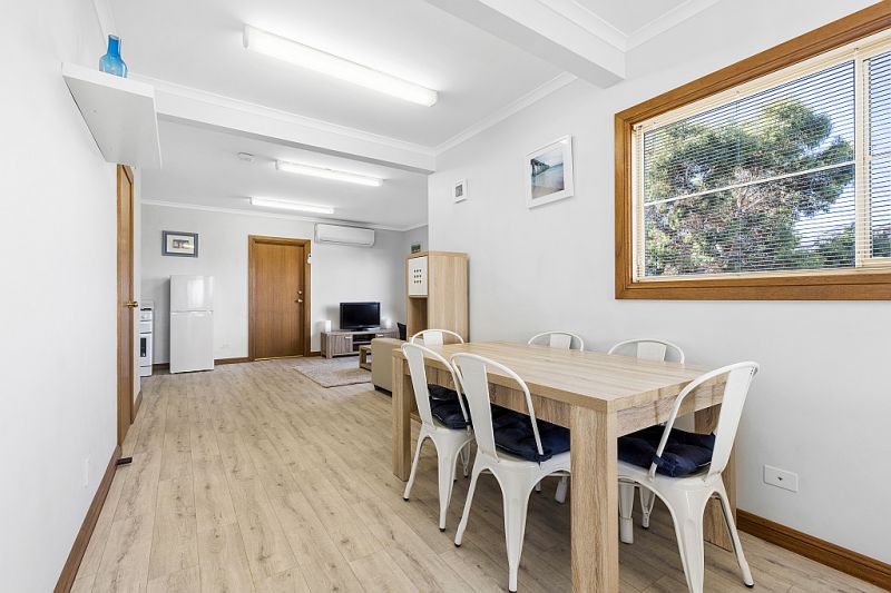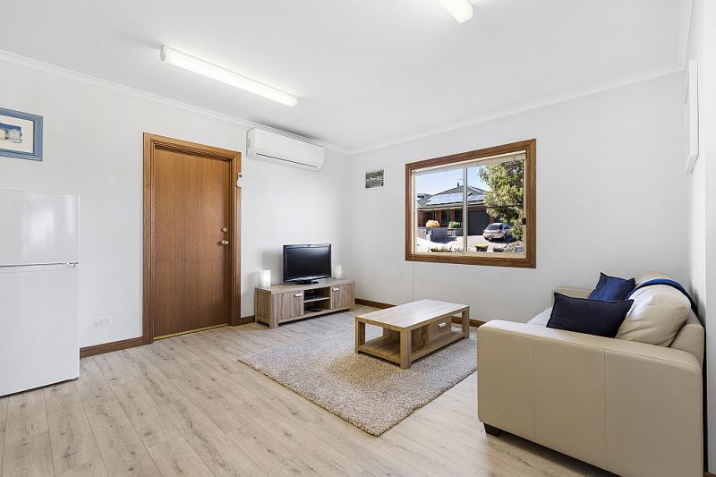 A split system air conditioner in the downstairs self-contained flat
