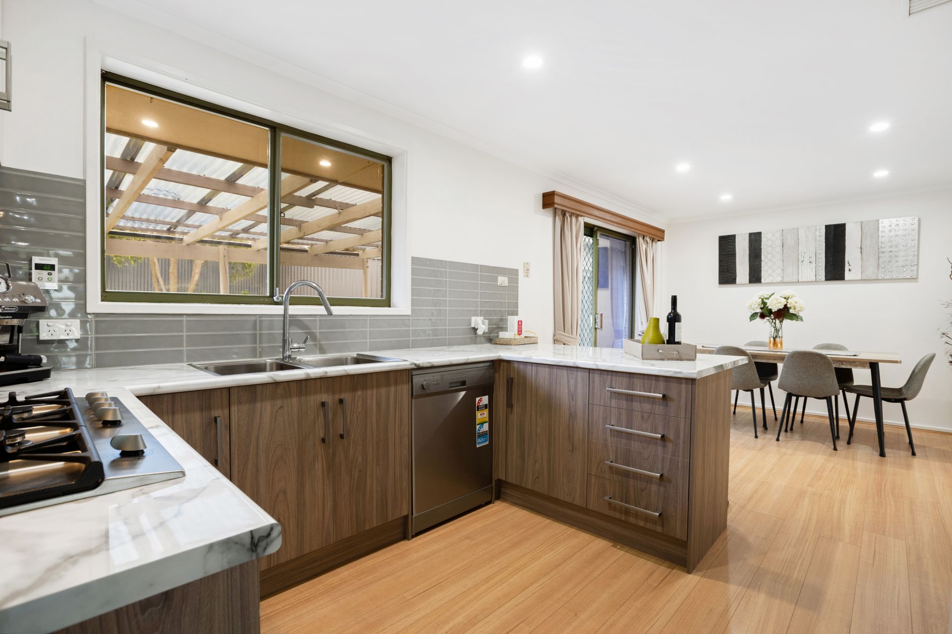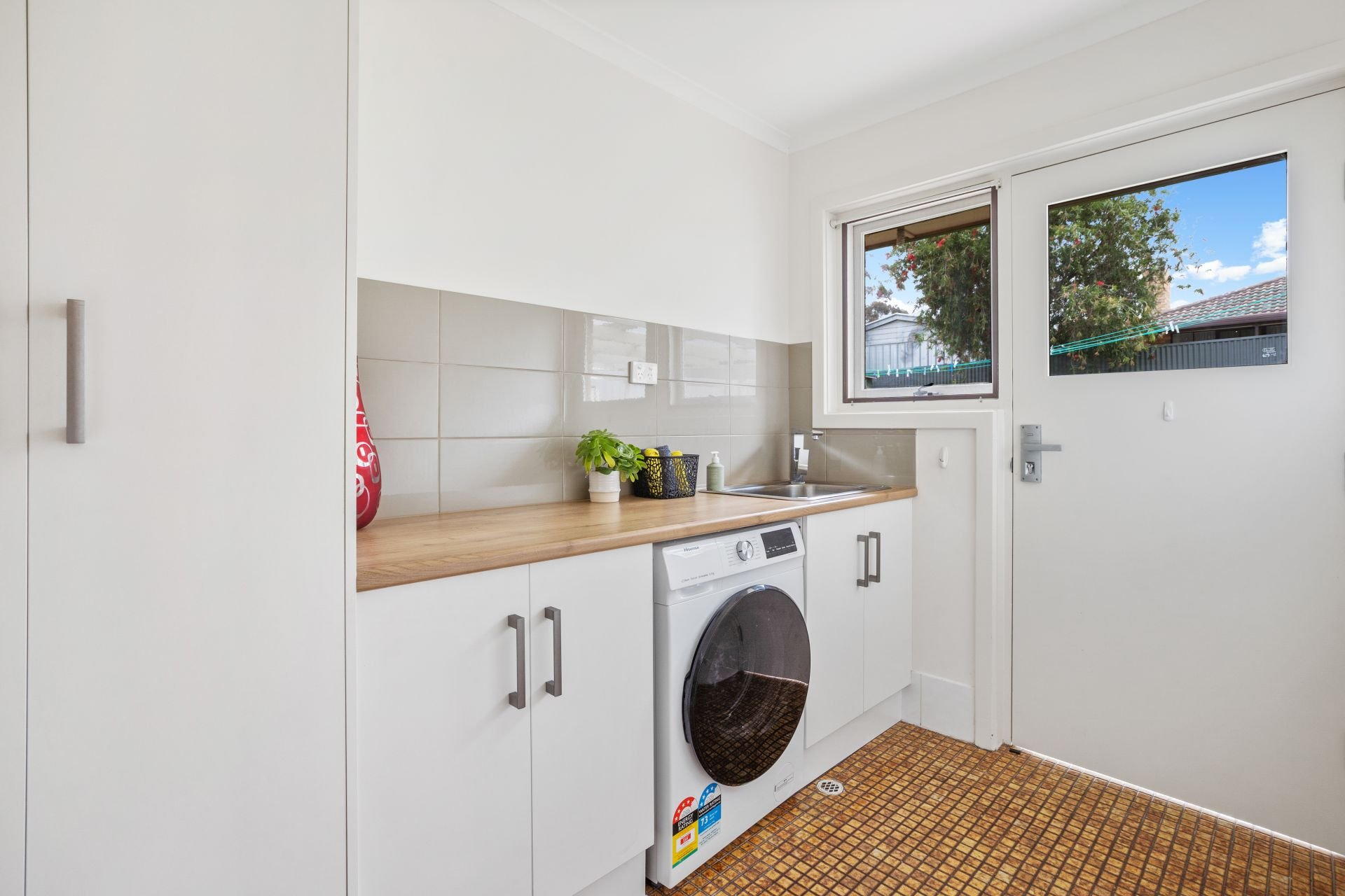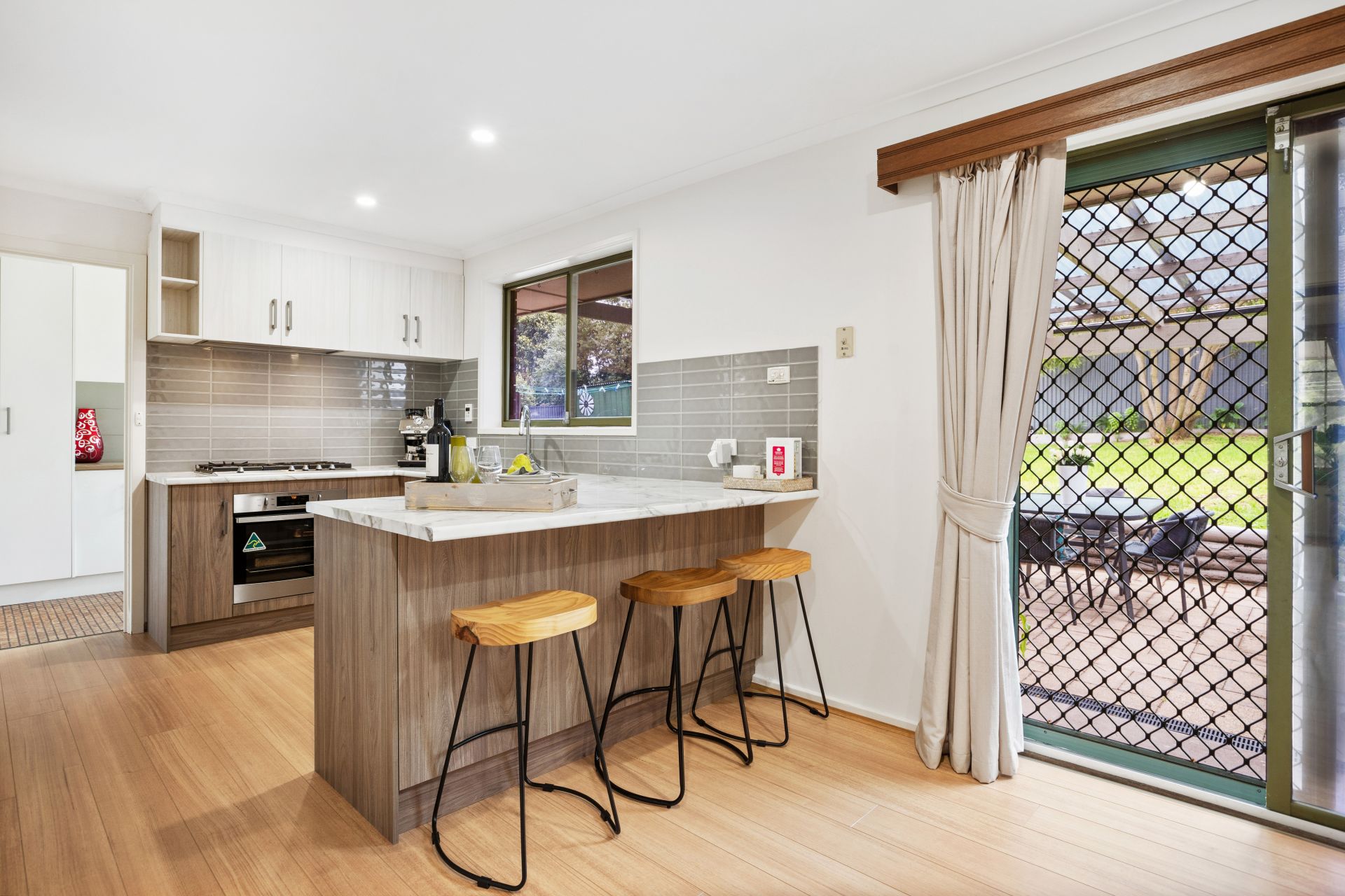 The well-appointed kitchen has been beautifully renovated with an abundance of timeless timber cabinetry, and quality appliances including a built-in oven with gas cooktop and dishwasher. For those who like to entertain, a handy breakfast bar provides an ideal gathering spot for hosting family and friends, while allowing for maximum storage and preparation space.
