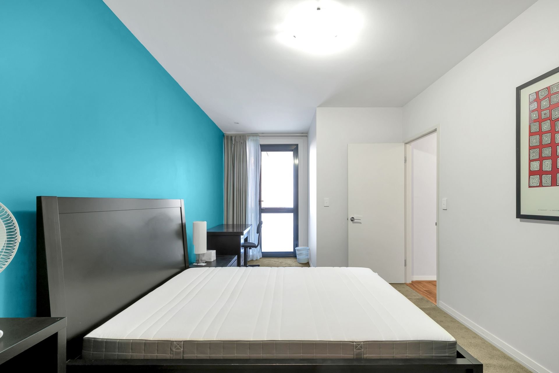 > Compact office space in main bedroom perfect for students or professionals working from home.