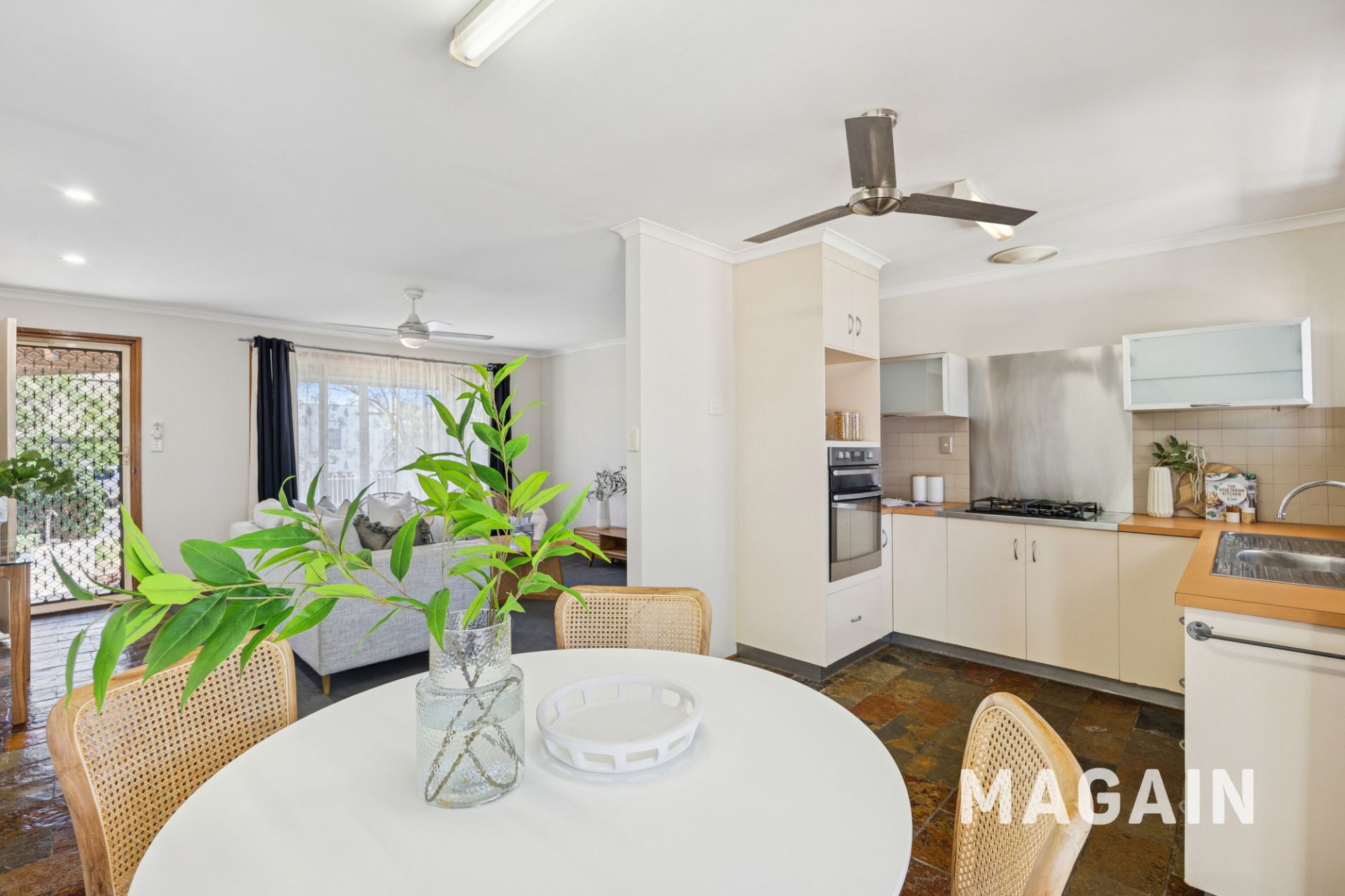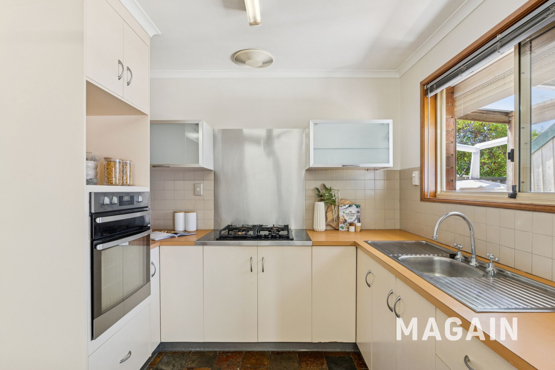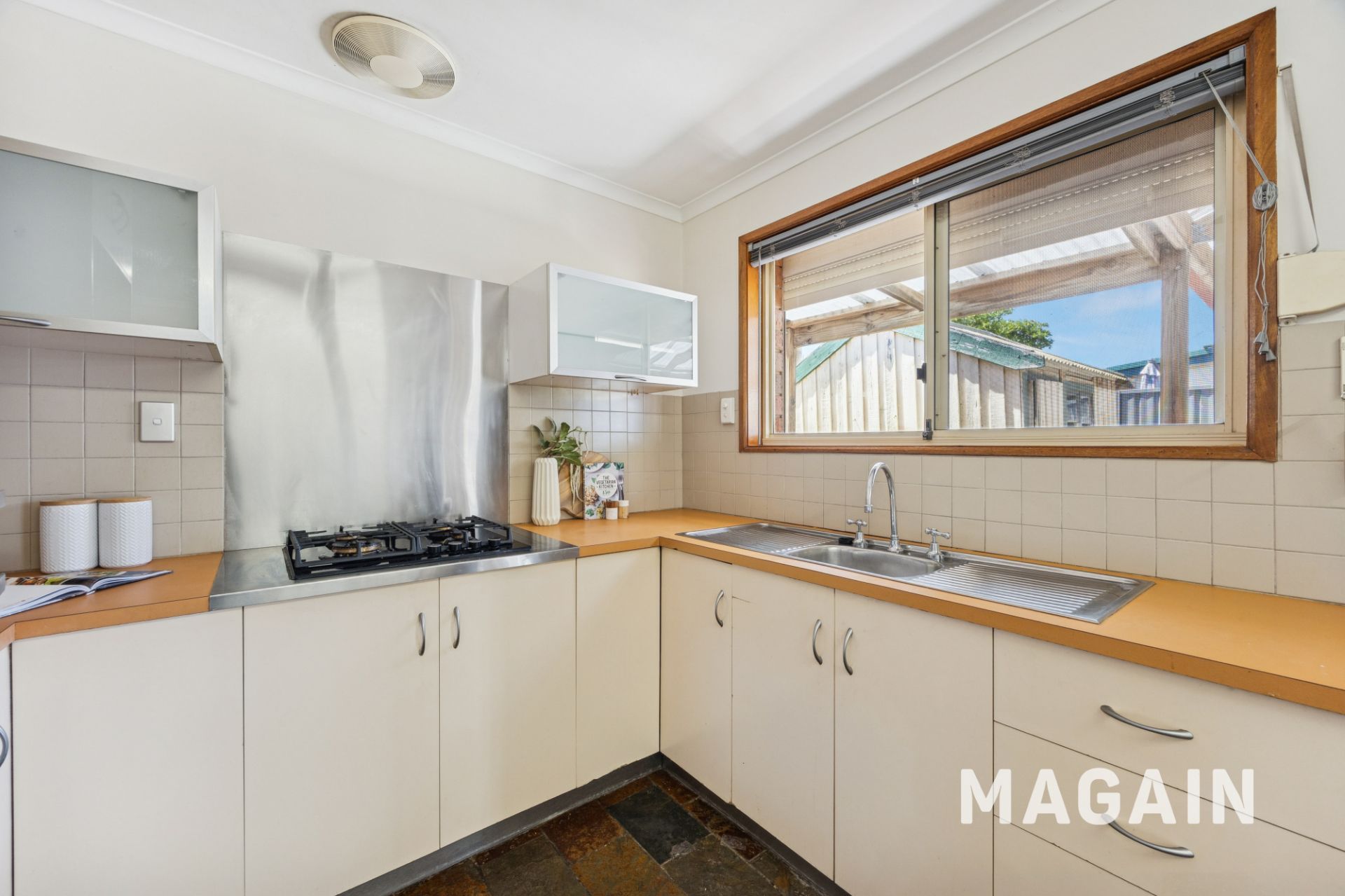The kitchen is neat and functional, offering a stainless steel splashback, gas cooktop, ample storage and practical bench space, making meal preparation easy and enjoyable.