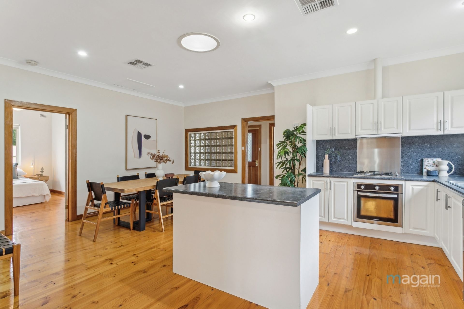 Step inside to find four generous size bedrooms (main with an essential ensuite), each offering the opportunity to create a personalised haven. The central hub of the home is the spacious open kitchen with dining area, perfect for accommodating a family of any size. The kitchen is equipped with an island bench, stainless steel appliances (including gas cooktop and dishwasher) and features a skylight, providing a bright and airy atmosphere for meal preparation.