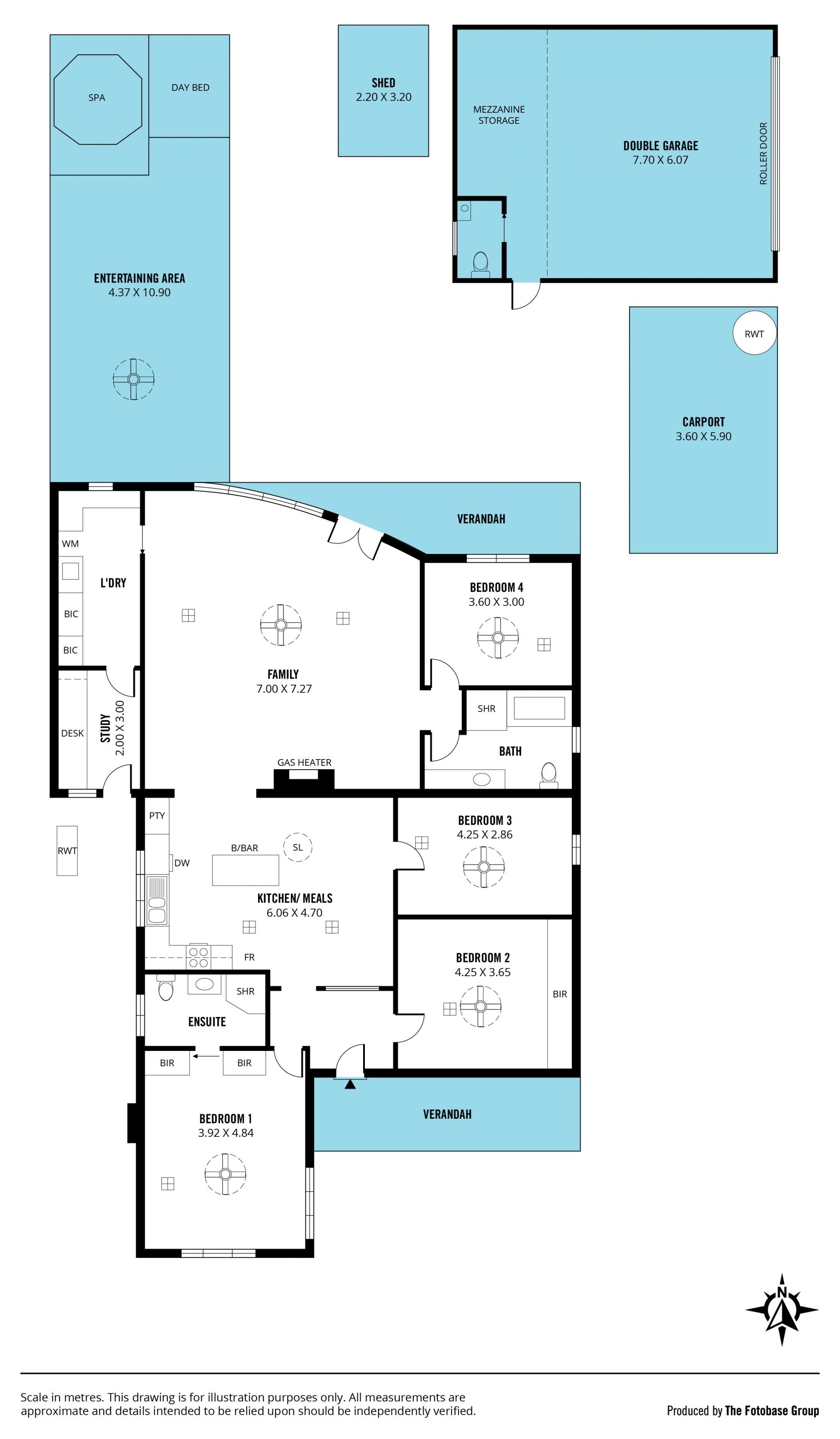 The double garage sits at the back of the property with automatic roller door and mezzanine, providing extra storage solutions. This space is perfect for those that like to tinker around with a workshop setup plus the bonus of a washroom/plumbing. A carport sits at the end of the driveway providing plenty of space for a boat or caravan – the options really are endless!!