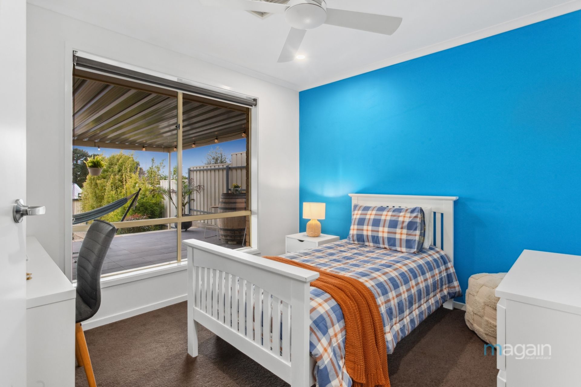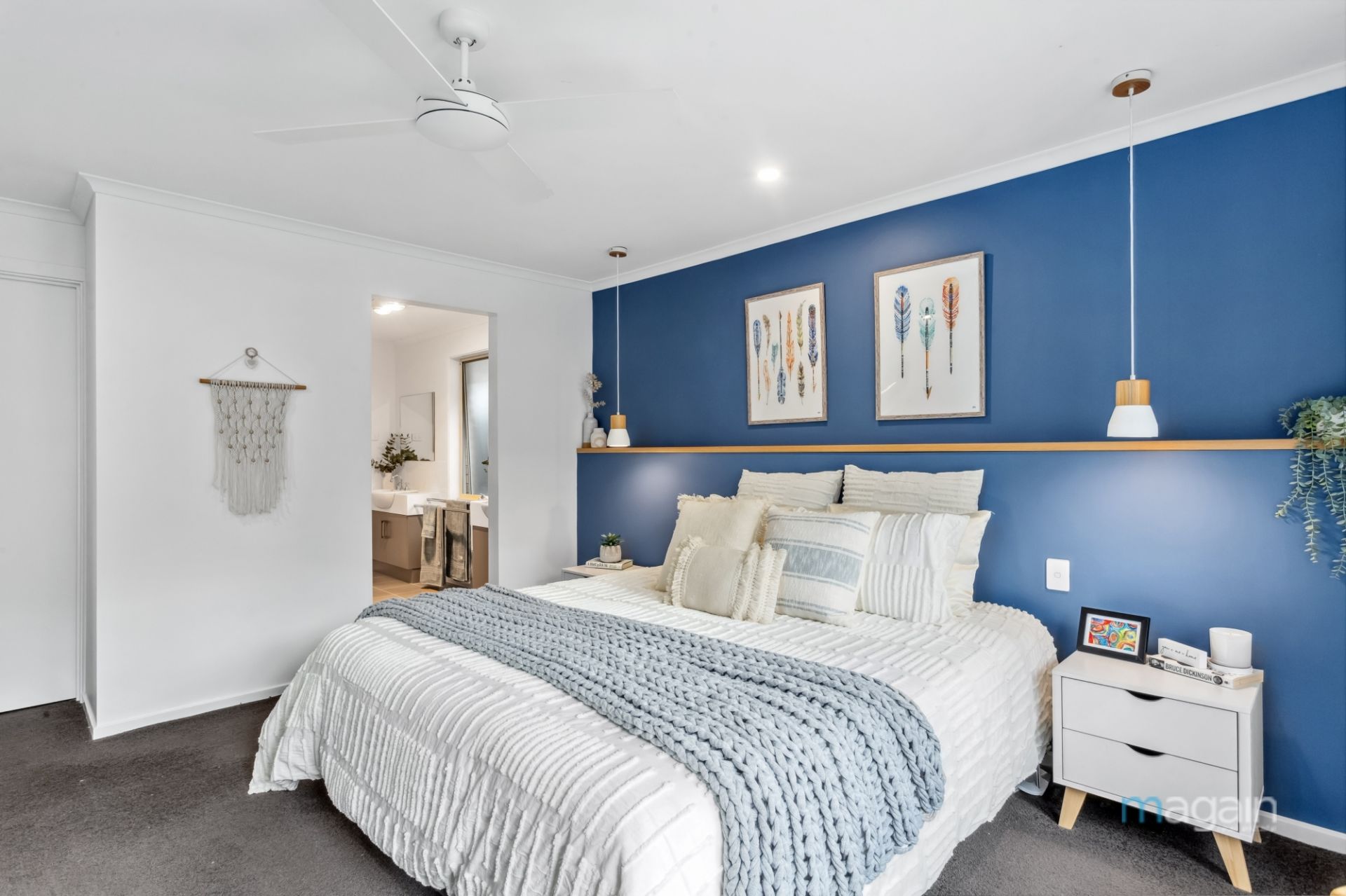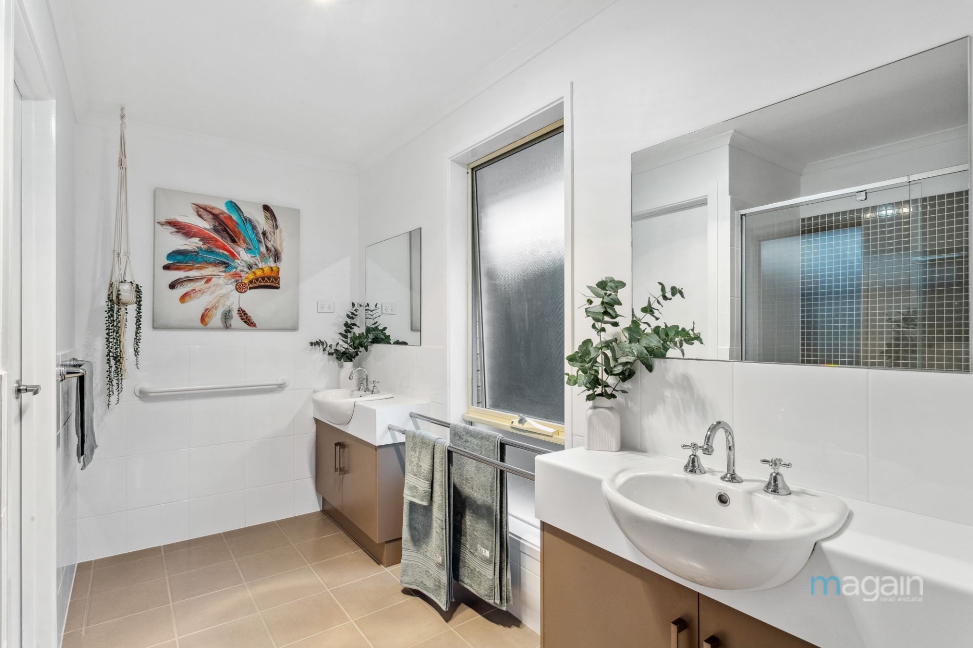 Bedrooms 2, 3, and 4 are generously sized, with Bedroom 4 featuring a walk-in robe and Bedroom 2 a built-in robe. These rooms share a well-appointed main bathroom with a separate toilet for added convenience. The spacious laundry offers excellent storage and direct outdoor access, making laundry day a breeze.