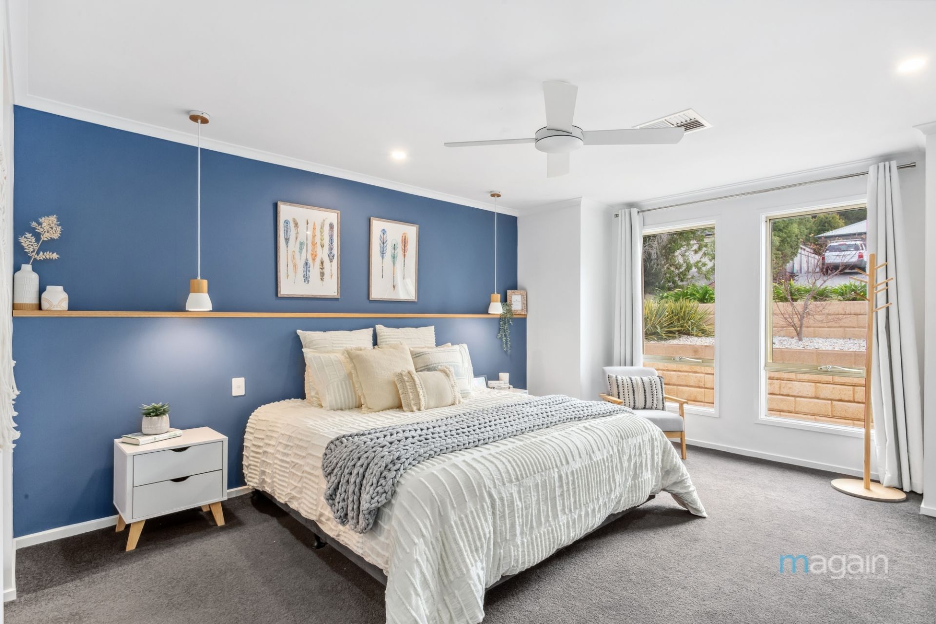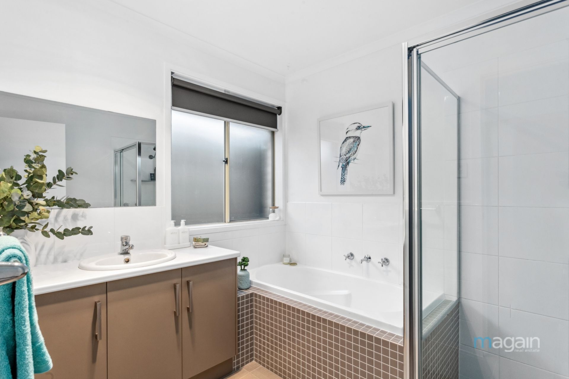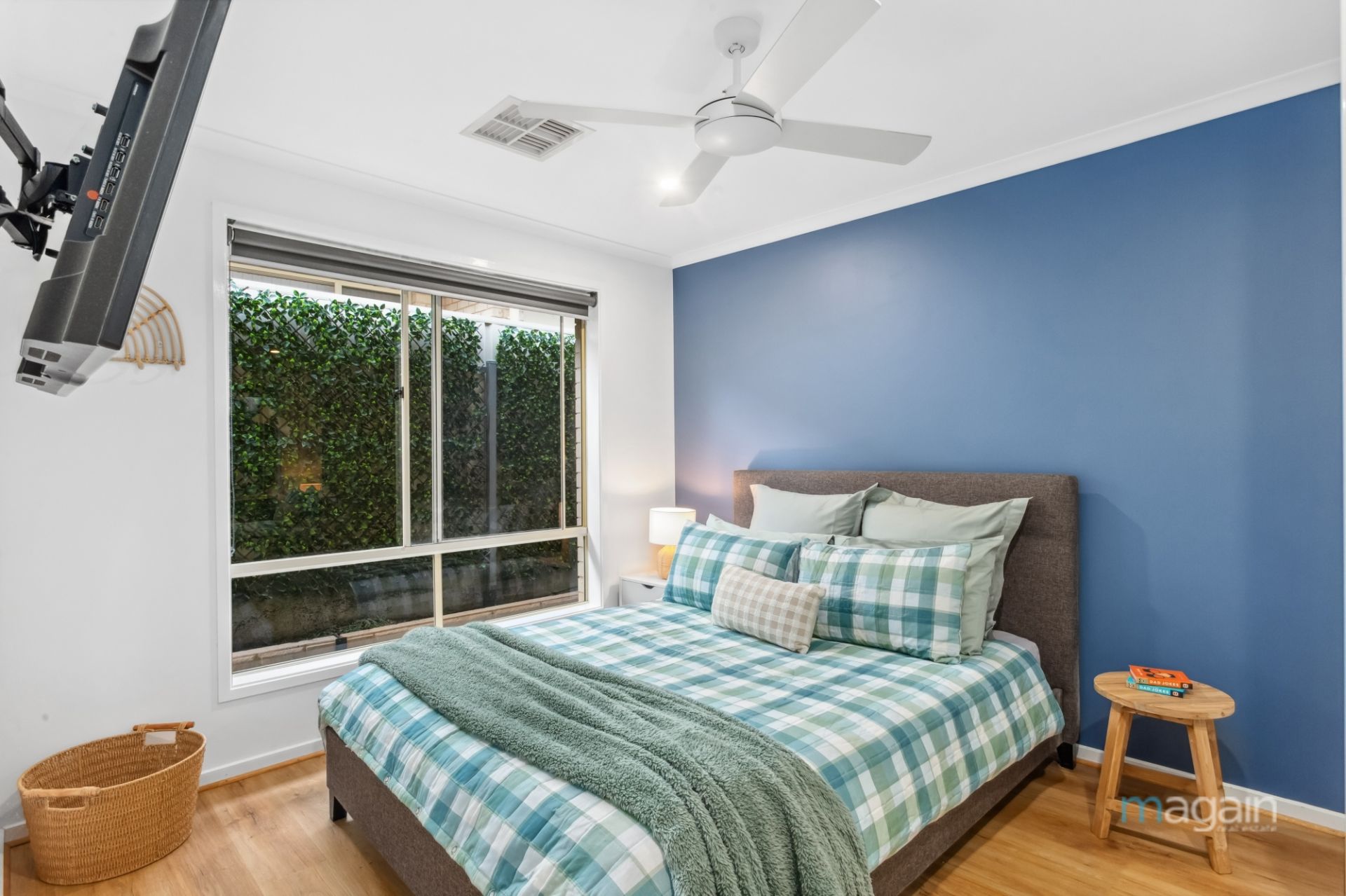 Bedrooms 2, 3, and 4 are generously sized, with Bedroom 4 featuring a walk-in robe and Bedroom 2 a built-in robe. These rooms share a well-appointed main bathroom with a separate toilet for added convenience. The spacious laundry offers excellent storage and direct outdoor access, making laundry day a breeze.
