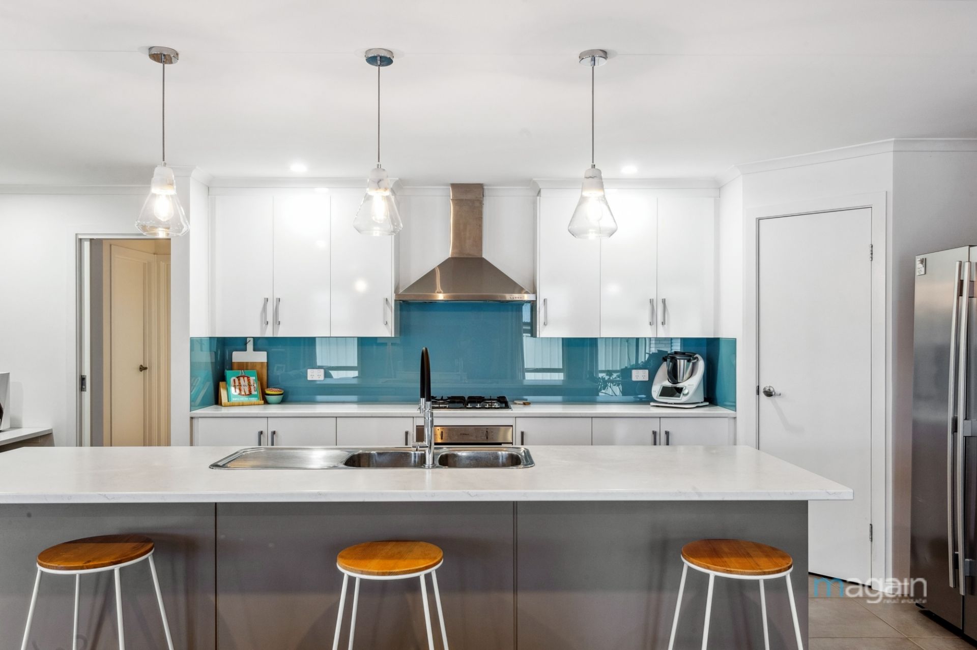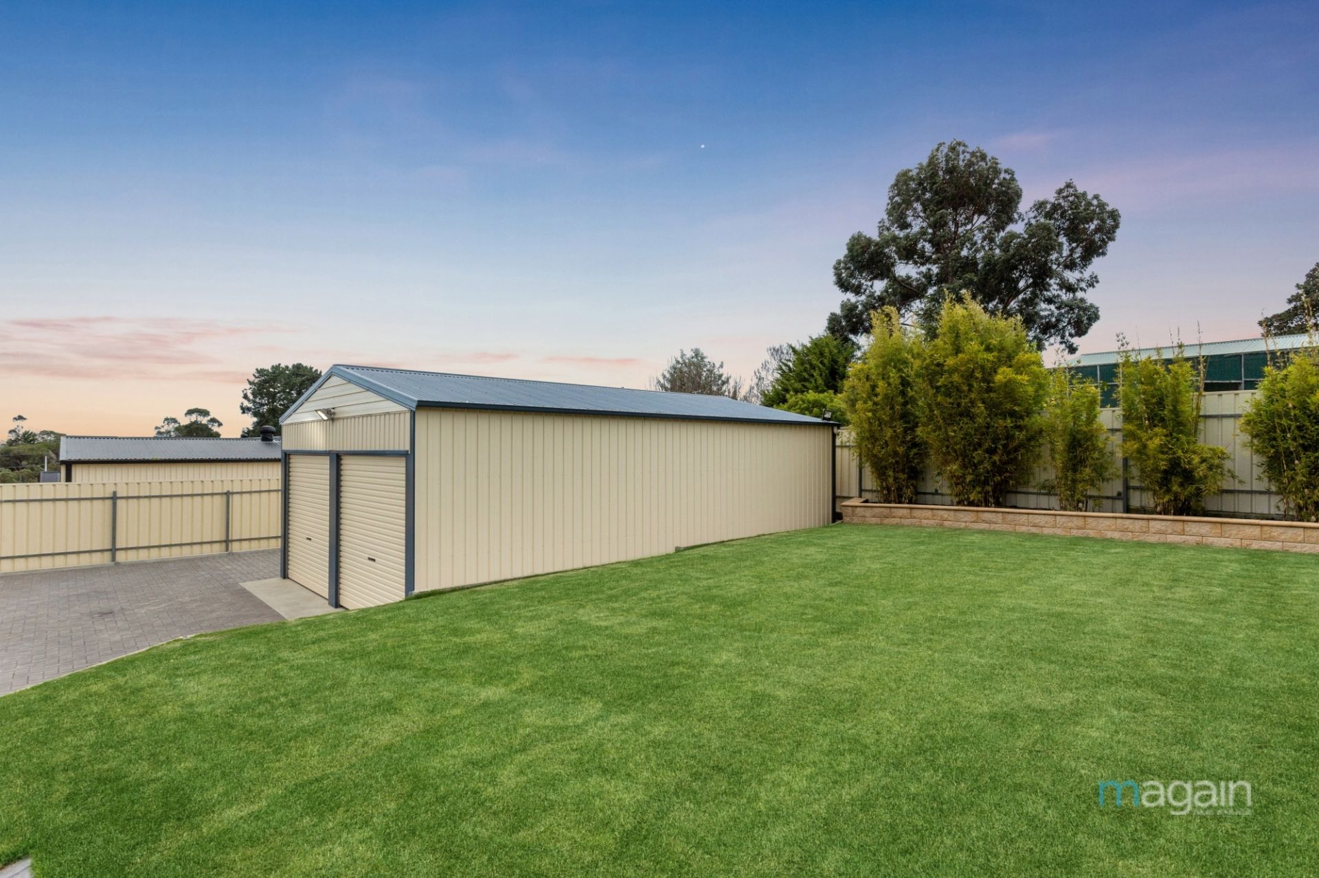 Outdoors, the undercover entertaining area provides a perfect spot for relaxation while overlooking the large, fully fenced backyard. Instantly, you'll be able to sit back and enjoy the entertaining area while the kids run around the ample amount of lawn. The double garage has drive-through access to a powered shed, ideal for storage or a workshop, with additional space along side for a boat or caravan. The shed is also equipped with water and a sink, providing added convenience for various tasks.