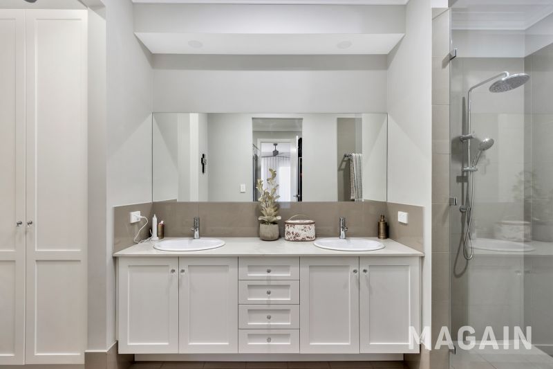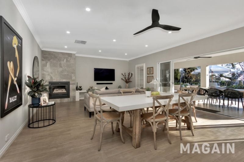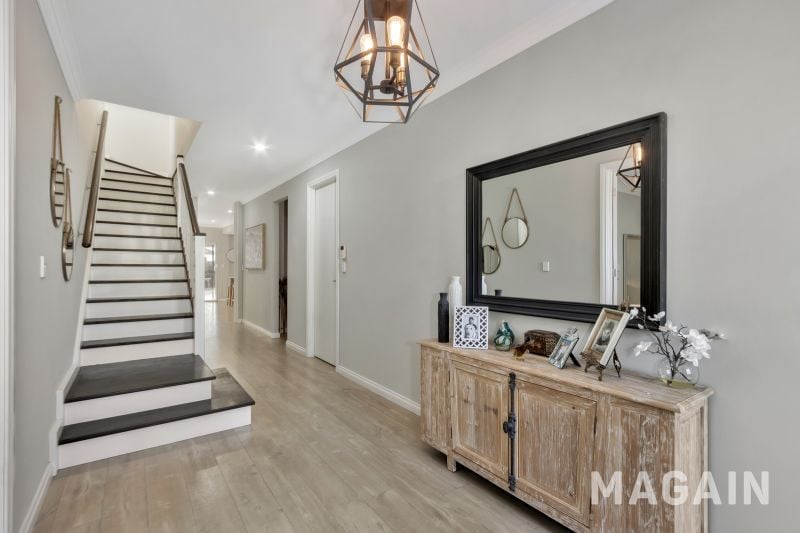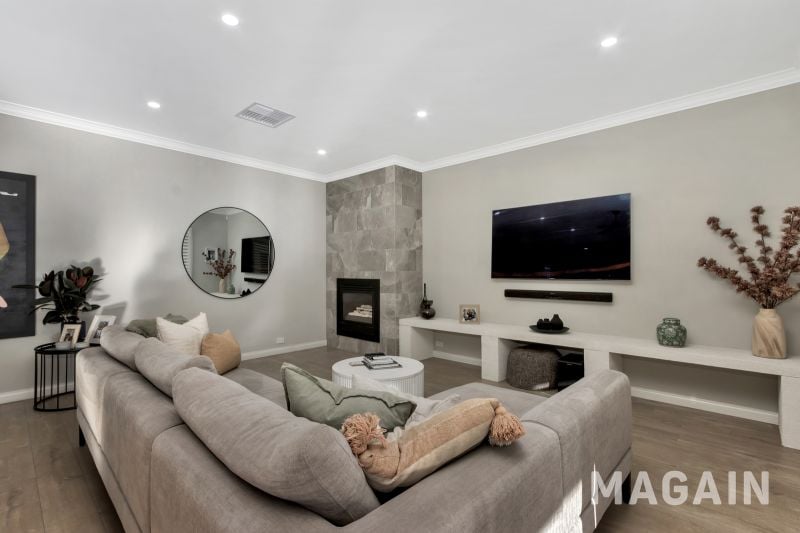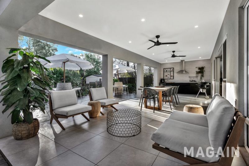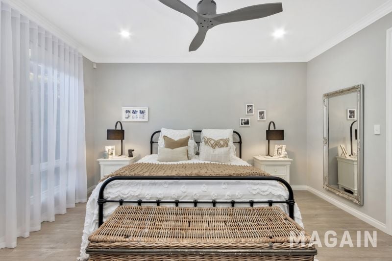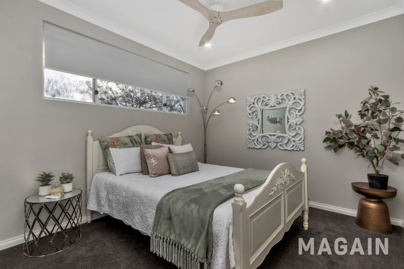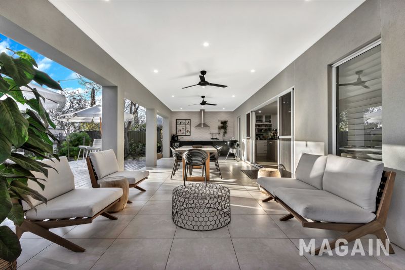 Boasting four spacious and beautifully appointed bedrooms, each features stylish ceiling fans, with the master suite offering a true retreat experience. Enjoy the convenience of his and hers walk-in robes and a luxurious ensuite complete with Caesarstone benchtops and a double vanity.