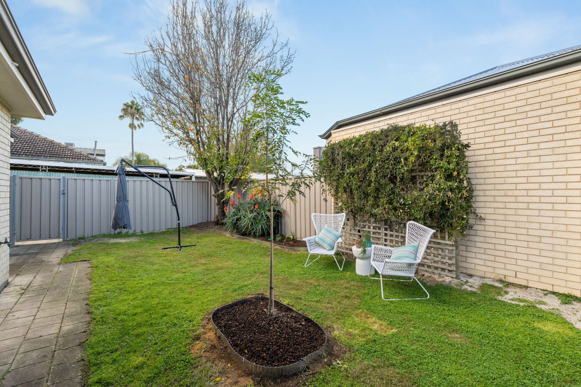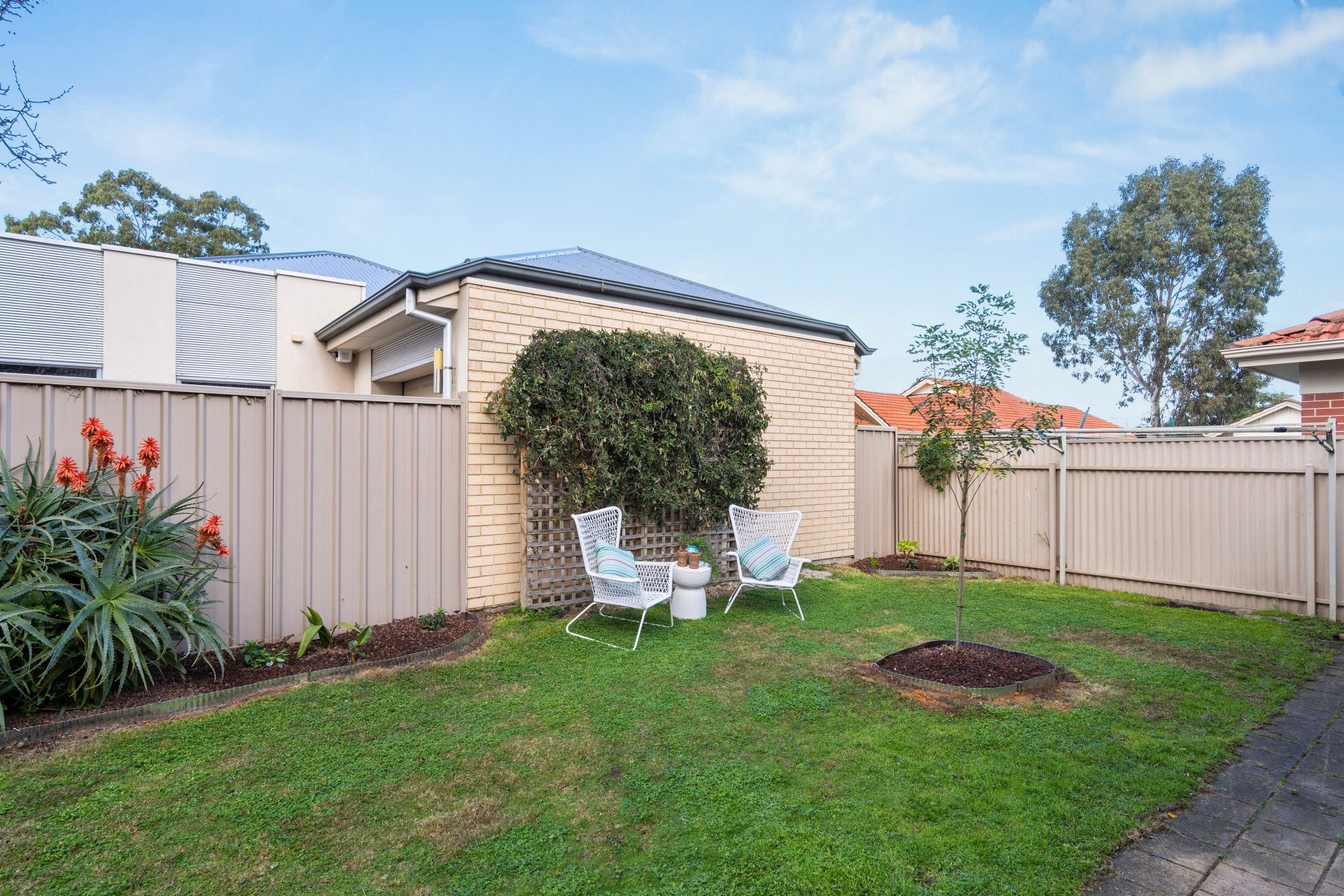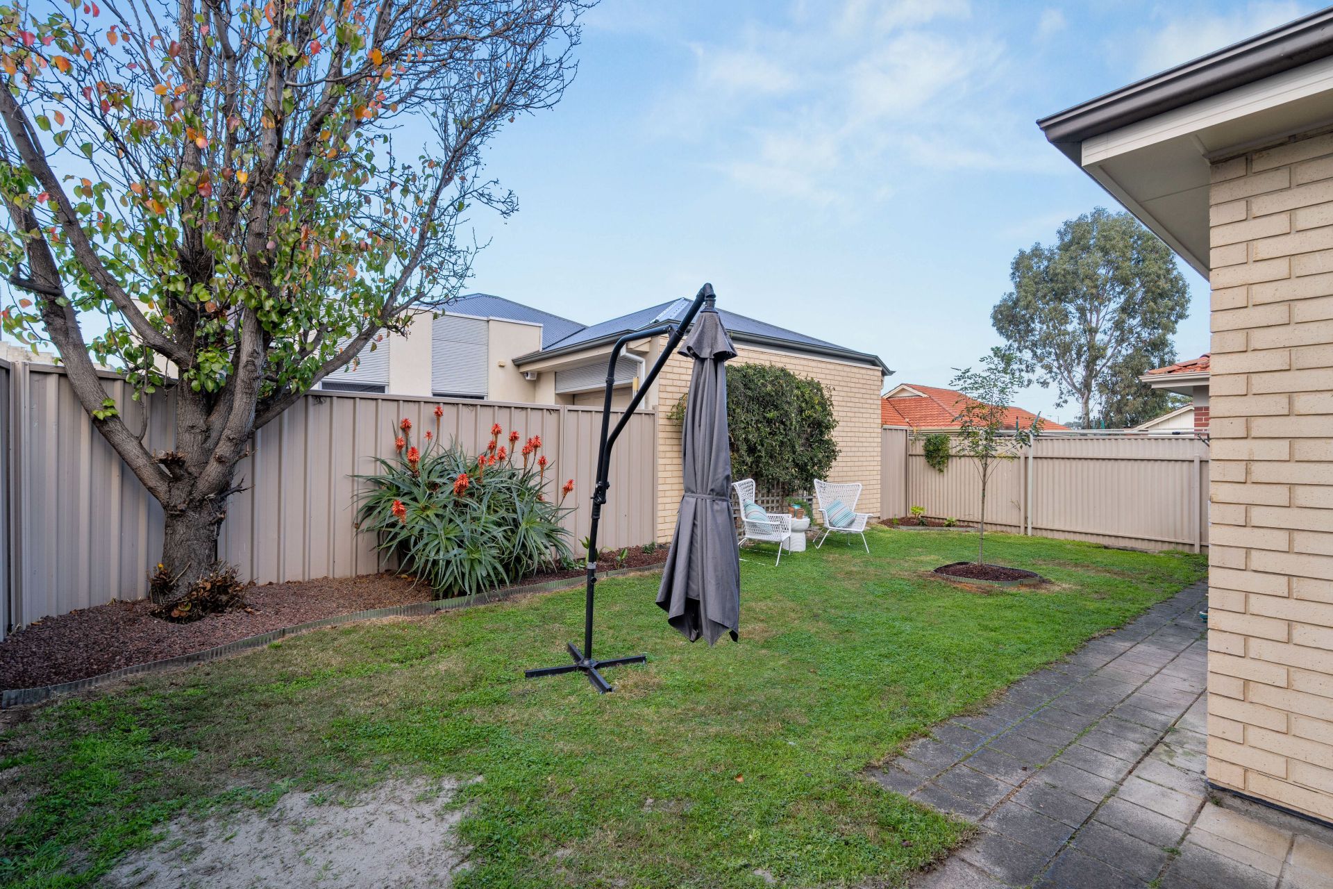 The backyard offers a well-maintained lawn and provides a secure space for relaxation and recreation. Whether you enjoy gardening or simply want a tranquil retreat, this backyard has you covered.