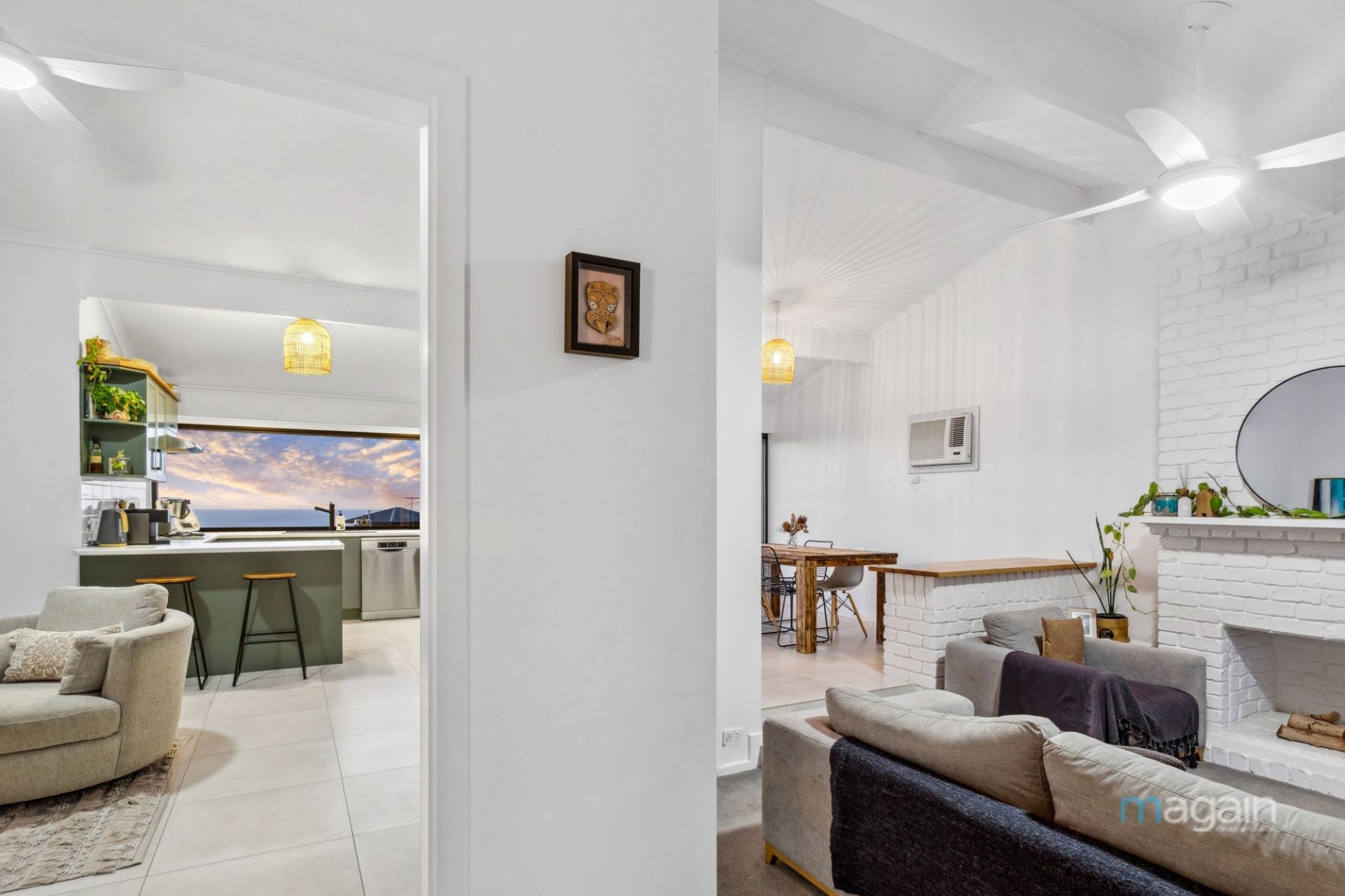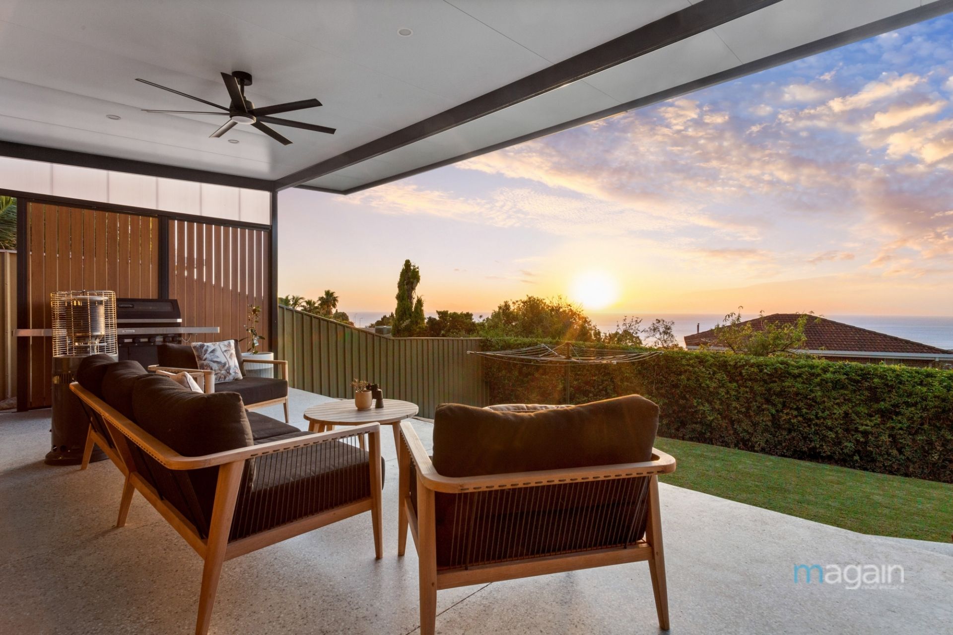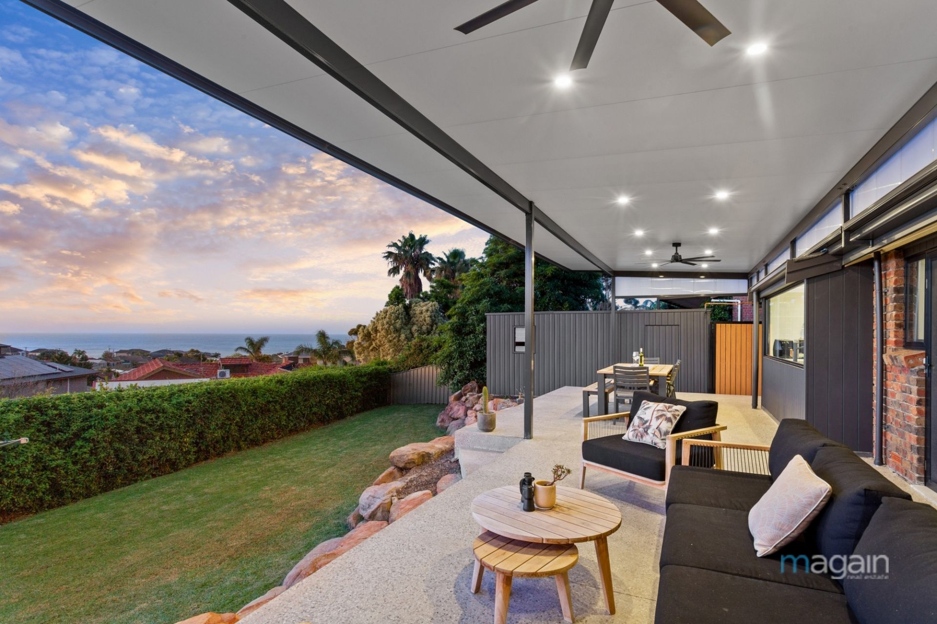 Step outside, and you'll discover the masterpiece of this residence, an expansive entertaining area that stretches along the back of the home. This space features exposed aggregate flooring, a pergola with LED lighting, and ceiling fans, creating the perfect backdrop for entertaining or enjoying breath-taking ocean sunsets with a glass of wine or take pleasure in your morning coffee. You'll also find down a split-level a grassed area and a convenient shed/workshop.