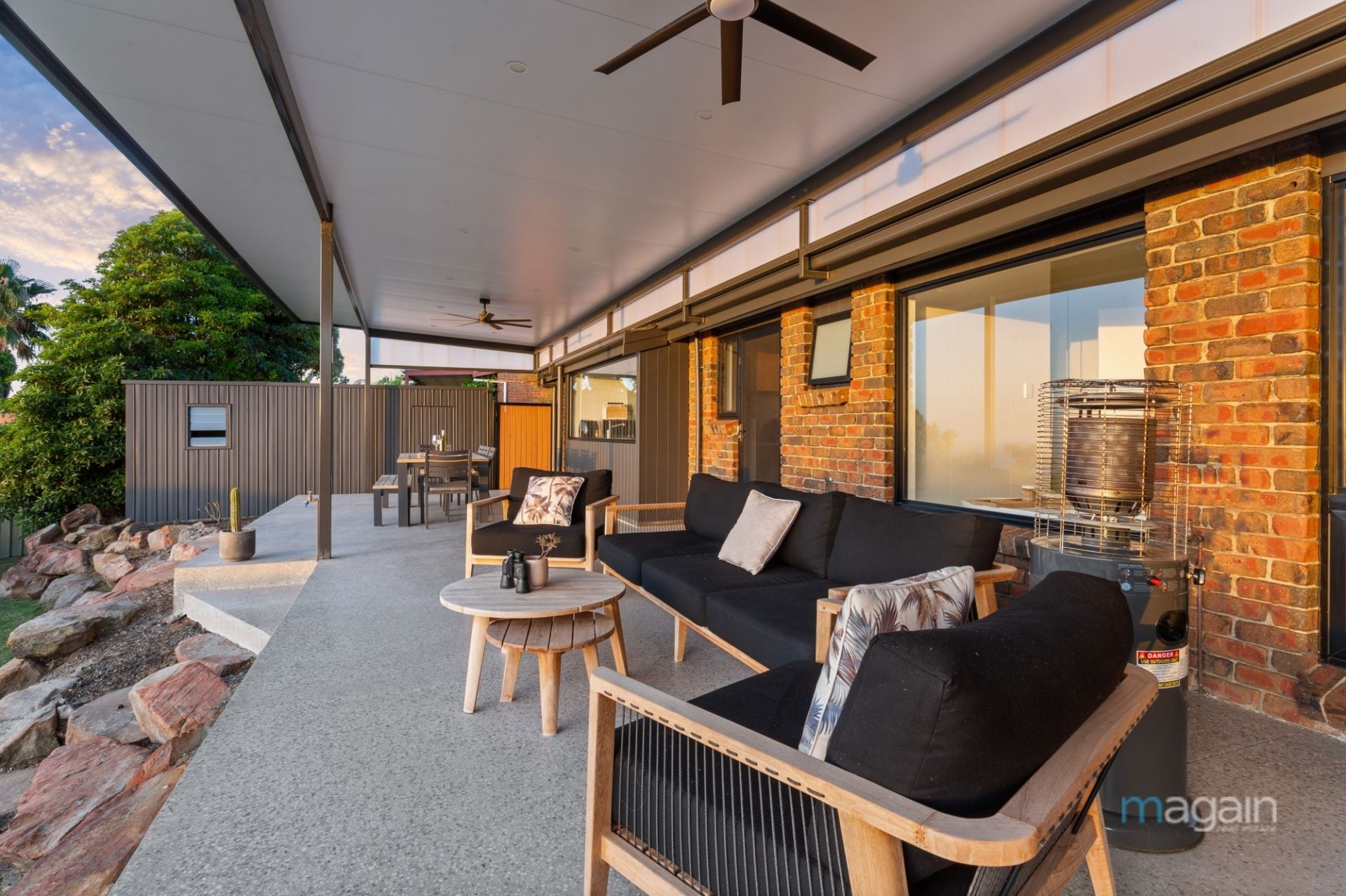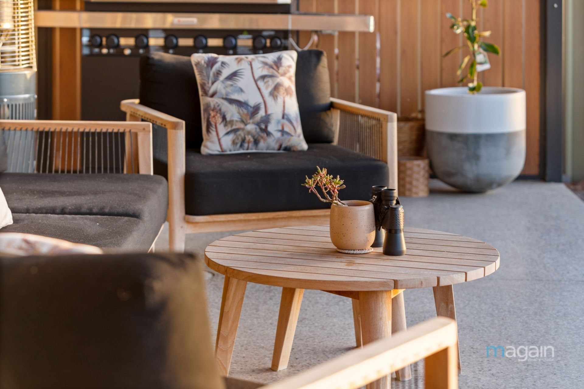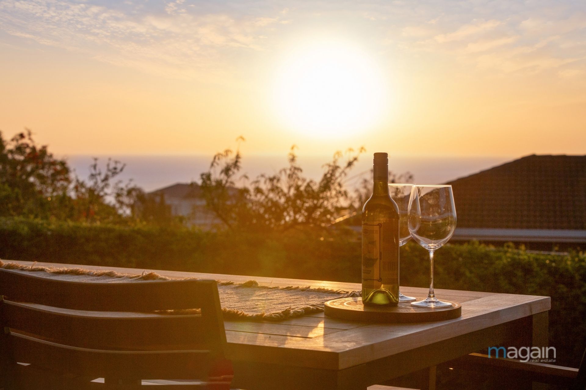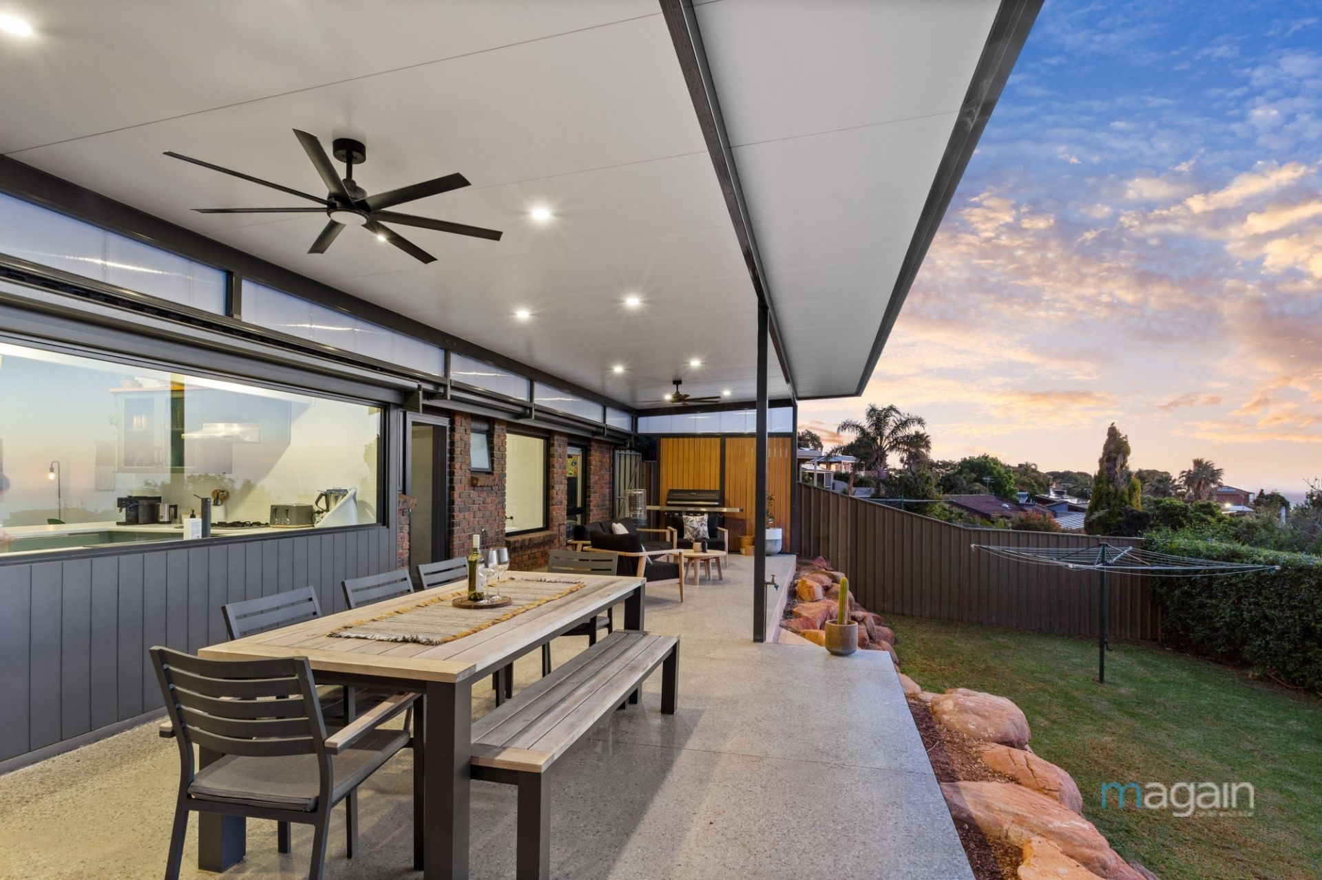 Step outside, and you'll discover the masterpiece of this residence, an expansive entertaining area that stretches along the back of the home. This space features exposed aggregate flooring, a pergola with LED lighting, and ceiling fans, creating the perfect backdrop for entertaining or enjoying breath-taking ocean sunsets with a glass of wine or take pleasure in your morning coffee. You'll also find down a split-level a grassed area and a convenient shed/workshop.