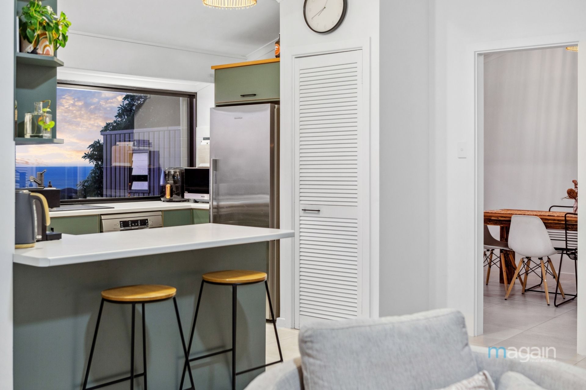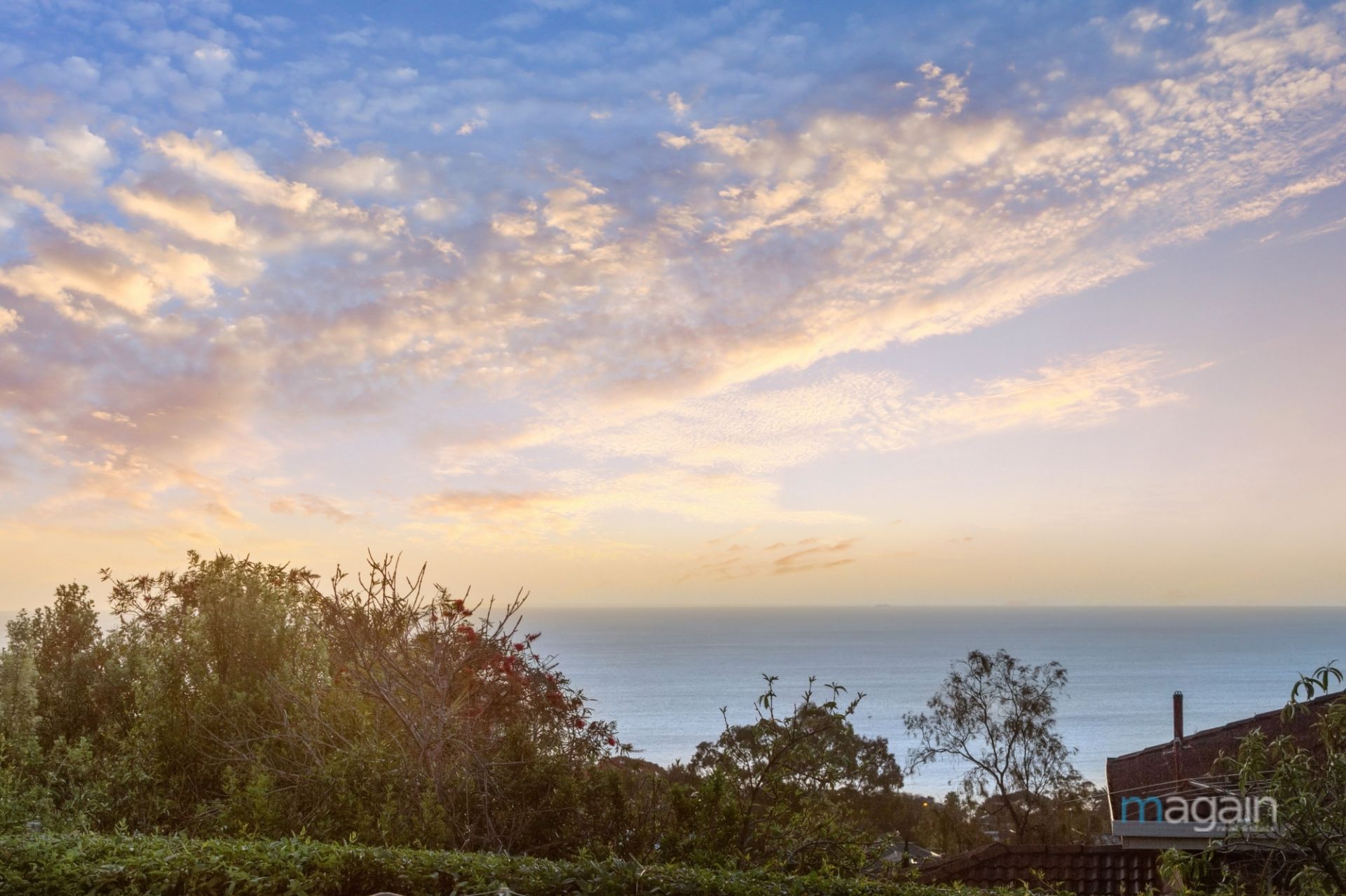 Upon entering, you'll be captivated by the entrance that leads to a sunken formal lounge with raked ceilings. Ascend a split level to discover an adjacent formal lounge, seamlessly connecting you to the beautifully renovated kitchen. This kitchen is a true marvel, boasting unparalleled sea views that will enchant you. It features a walk-in pantry, a gas cooktop, a dishwasher, and a breakfast bar that effortlessly connects to the second living area.