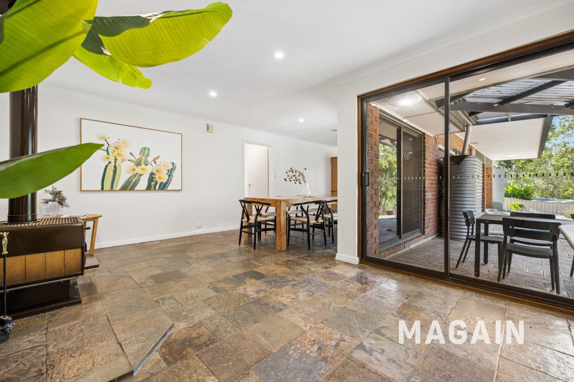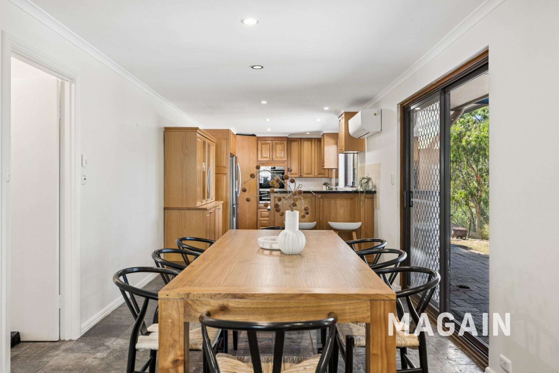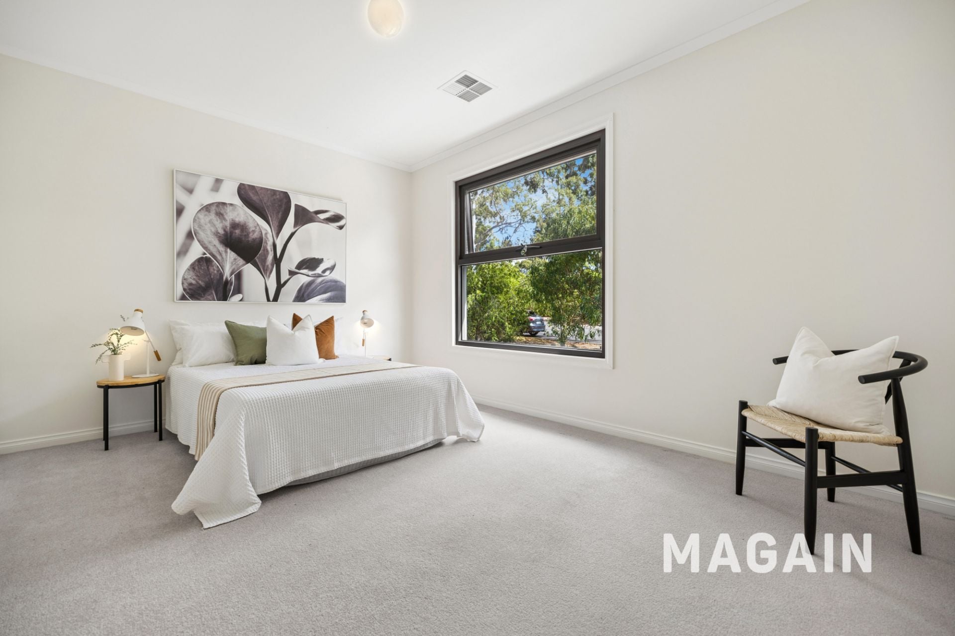 At the heart of the home lies a spacious open-plan living, kitchen, and dining area. Bathed in natural light from multiple picture windows and glass sliding doors that open to the outdoor spaces, this bright and airy zone creates a warm and welcoming atmosphere. Whether you're relaxing in the living area, gathering around the dining table, or preparing meals in the kitchen, the well-considered layout ensures effortless flow and comfortable everyday living. A split system air conditioner and a stylish combustion heater provide year-round climate control, enhancing the appeal of this central living space.