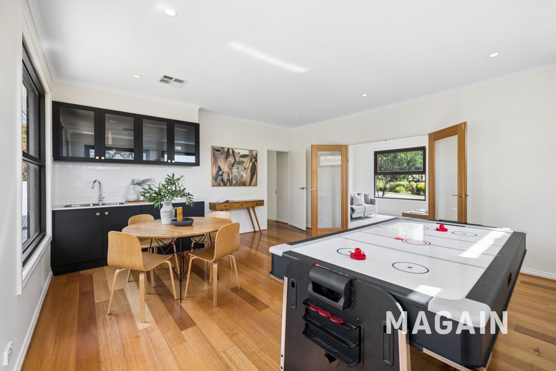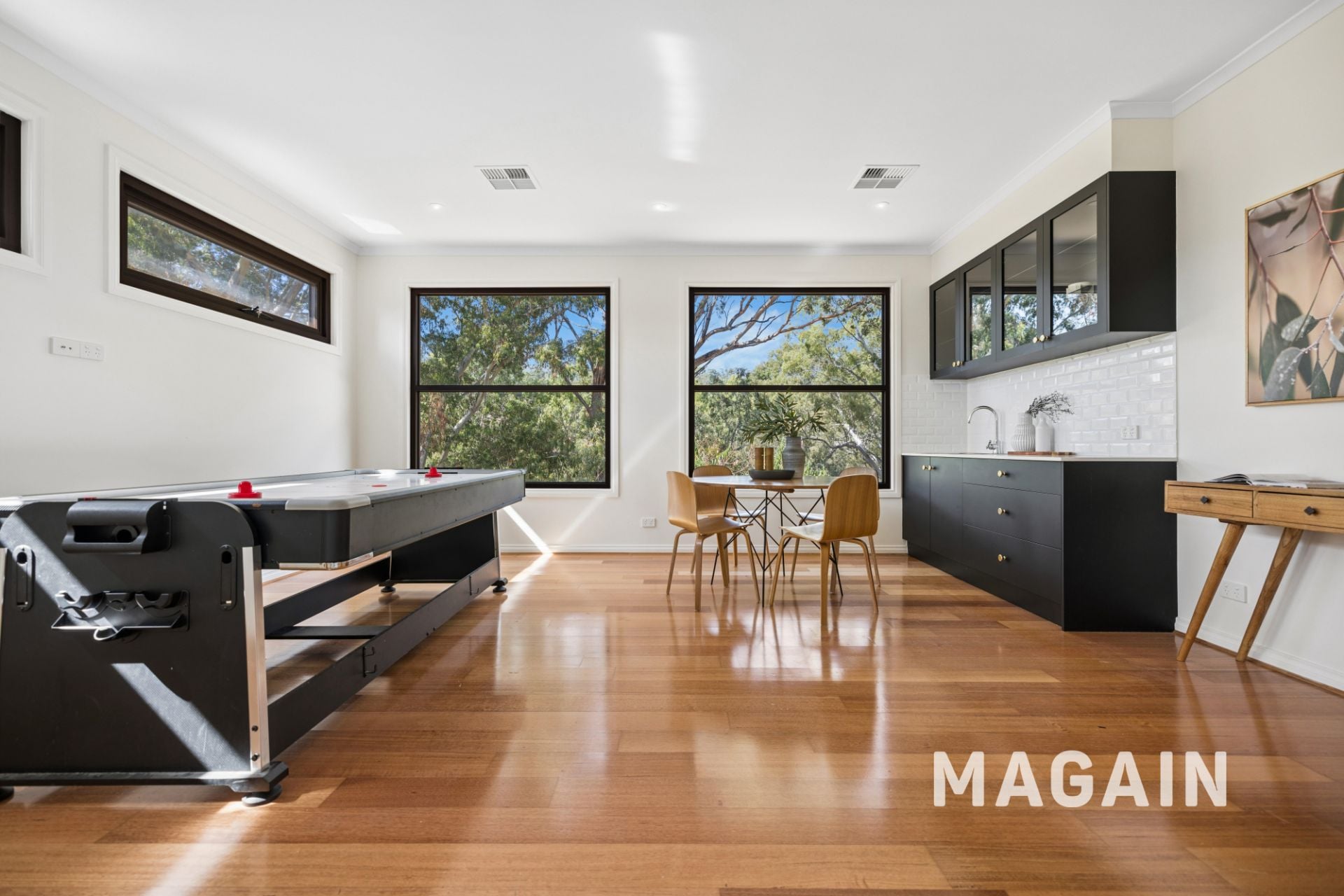 Upstairs, the home continues to impress with the remaining two bedrooms, an additional bathroom, a separate living area, and a spacious games room. This self-contained level offers excellent flexibility, making it ideal for accommodating guests or creating a private retreat for older children. Ducted reverse cycle air conditioning services the upper level, ensuring comfort throughout the year.