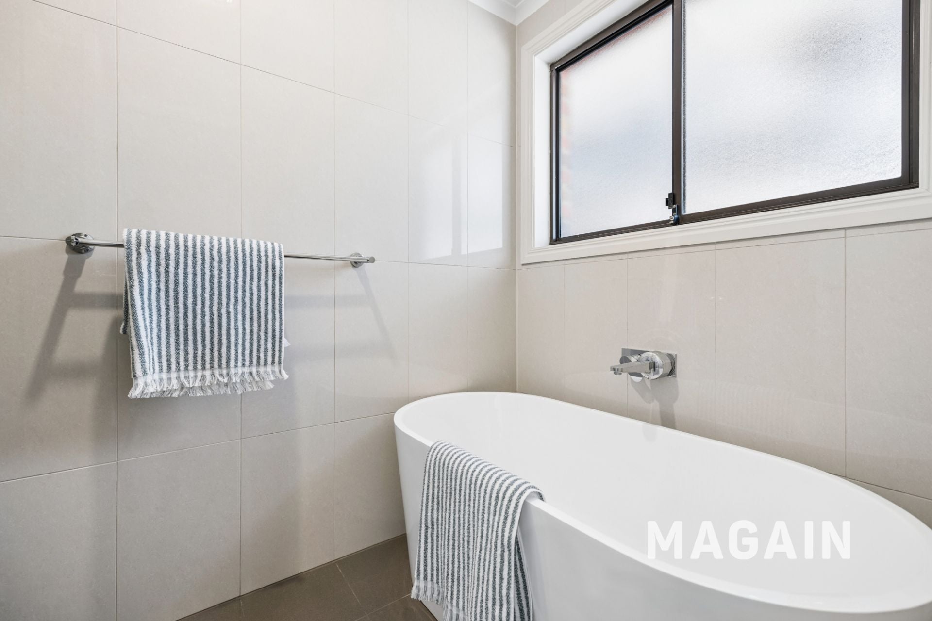 The thoughtfully designed floorplan prioritises practicality and ease of living, with all lower-level bedrooms conveniently located near the main bathroom and laundry. The bathroom is well-equipped for family living, featuring a bathtub, walk-in shower, dual vanity, and a separate toilet. The laundry is equally functional, offering direct access to the outdoors for added convenience.