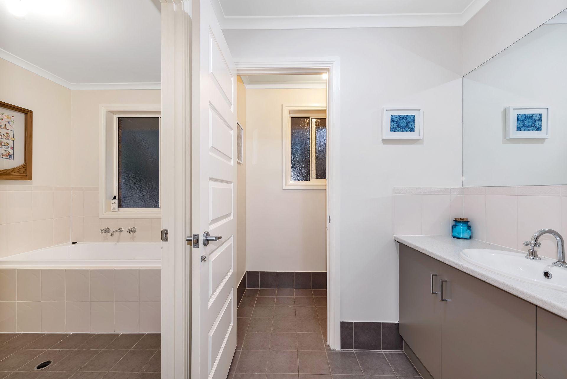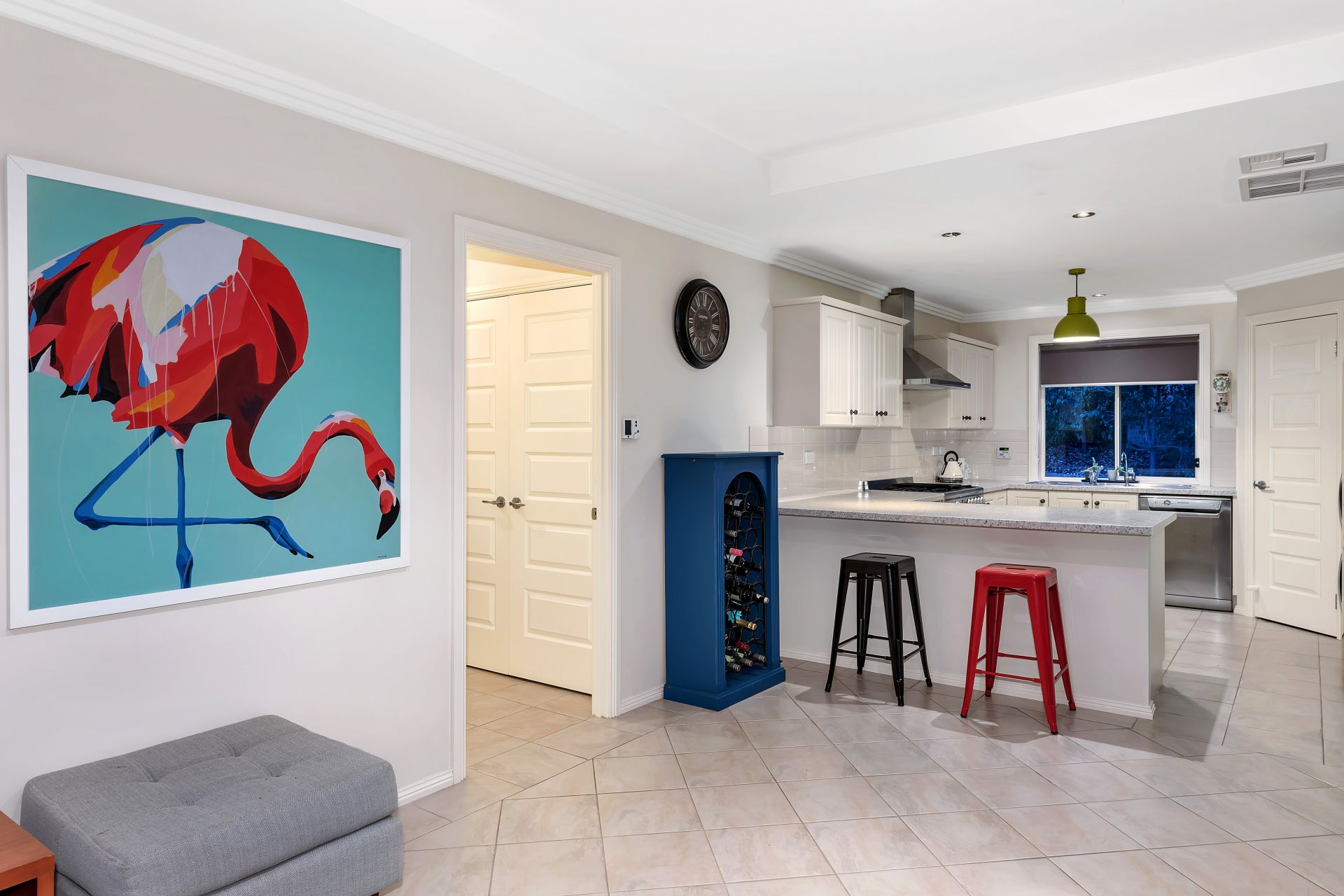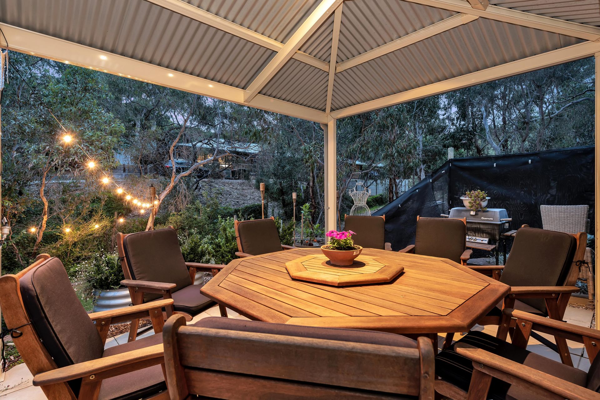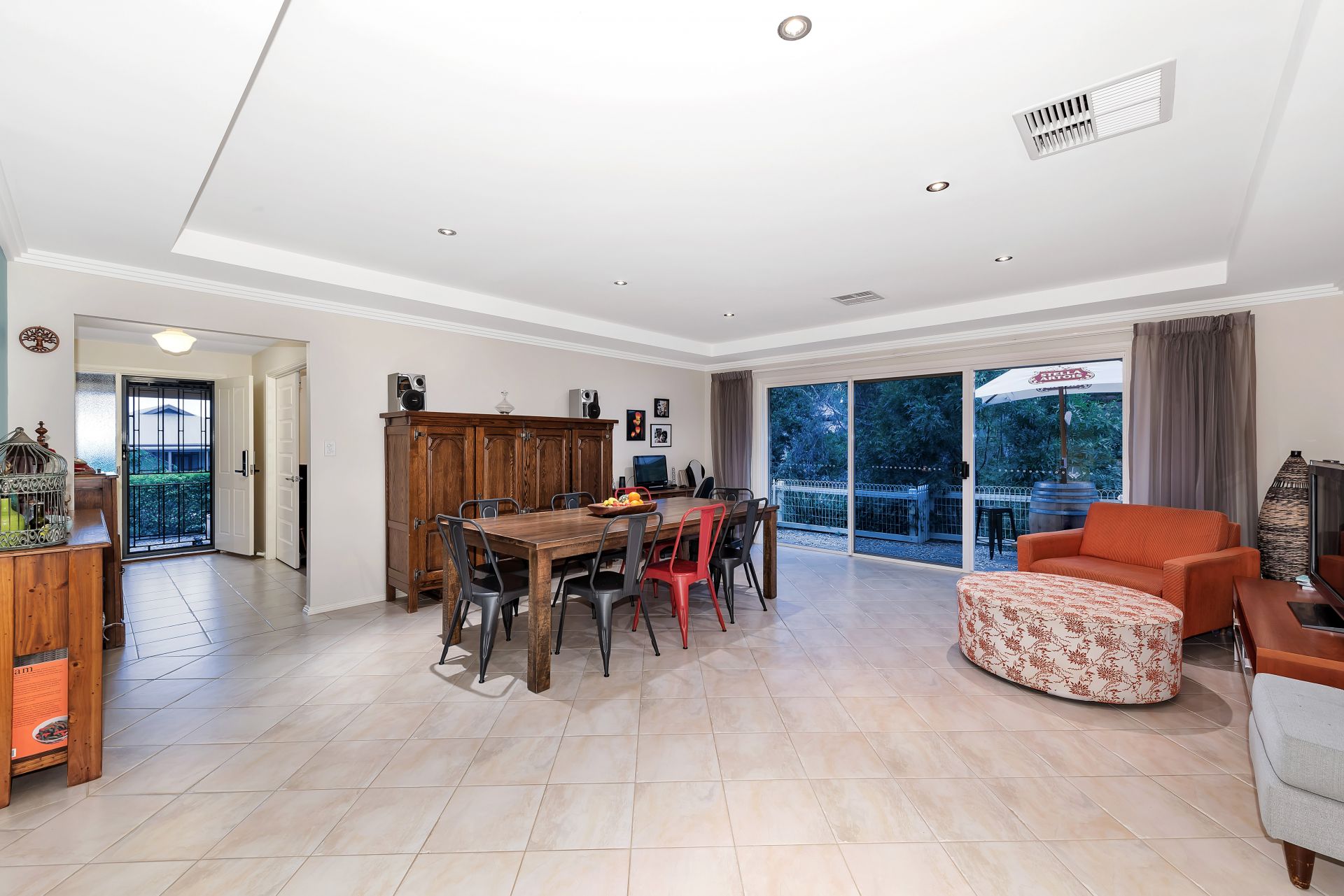 Stepping outside, you enter your own piece of paradise. Grab a wine and soak in the ambience that surrounds you as you gaze over the gorgeous yard.. If you're lucky you may even hear a kookaburra or two! The yard has been beautifully manicured to make the most of the native flora that makes up the property. A garden path leads you to the lower section of the property, with enough space for the kids to ride to jump on the trampoline. With fencing surrounding the property you can rest easy knowing the kids and furry friends are safe.