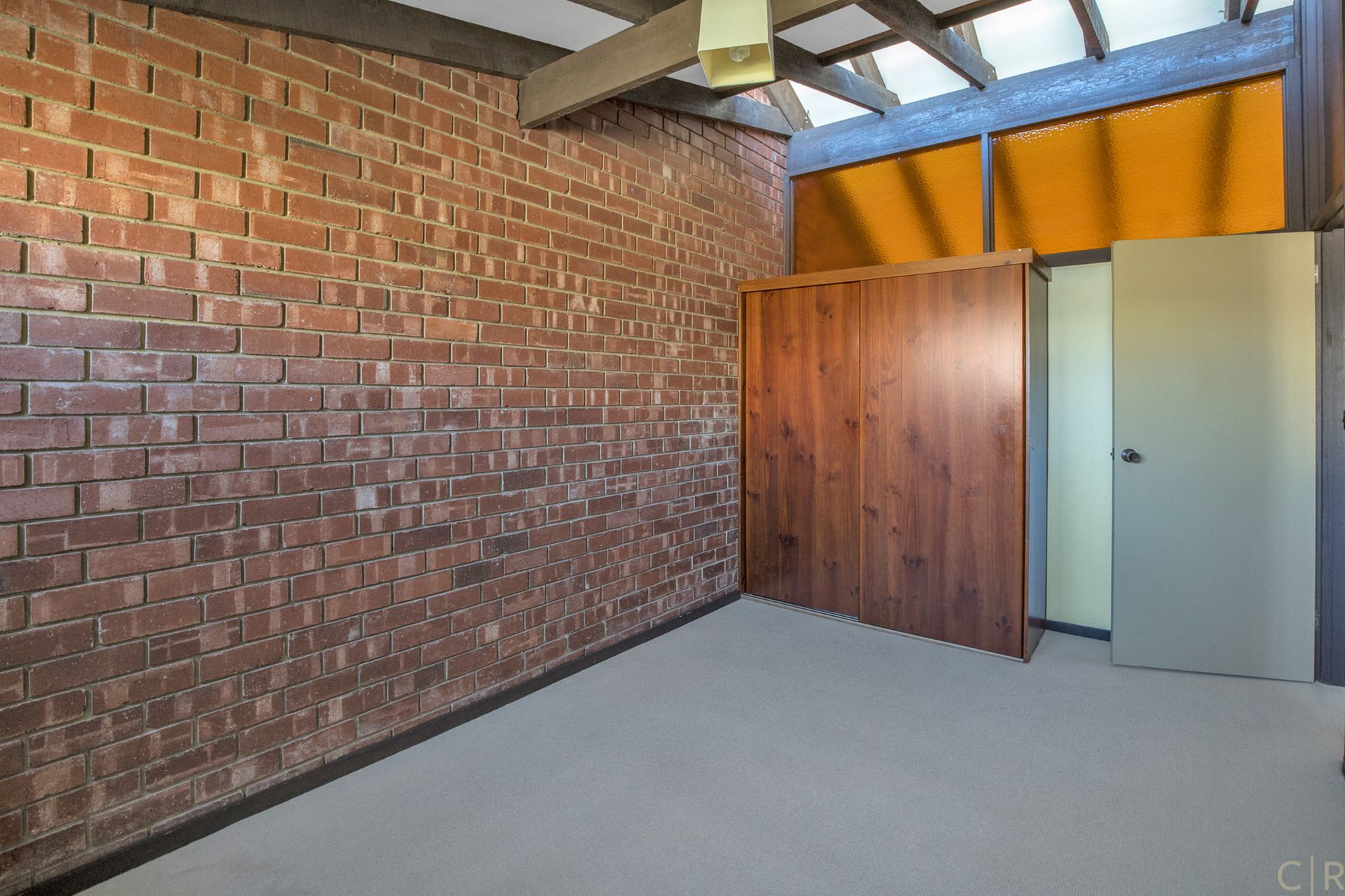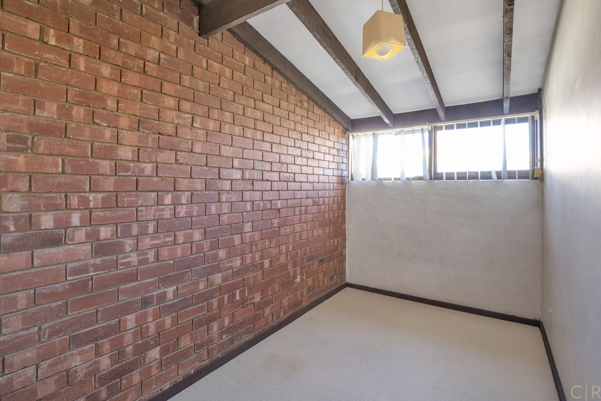 Overlooking a large lounge/dining room with exposed beams and amber glass which gives the home a warm inviting feel!
