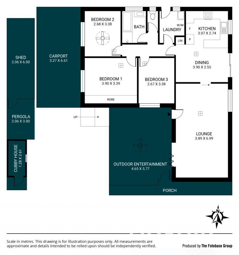 Additional features include a handy shed for tools and gardening supplies, 25 solar panels to boost energy efficiency, and a cubby house that promises endless outdoor fun for the kids.