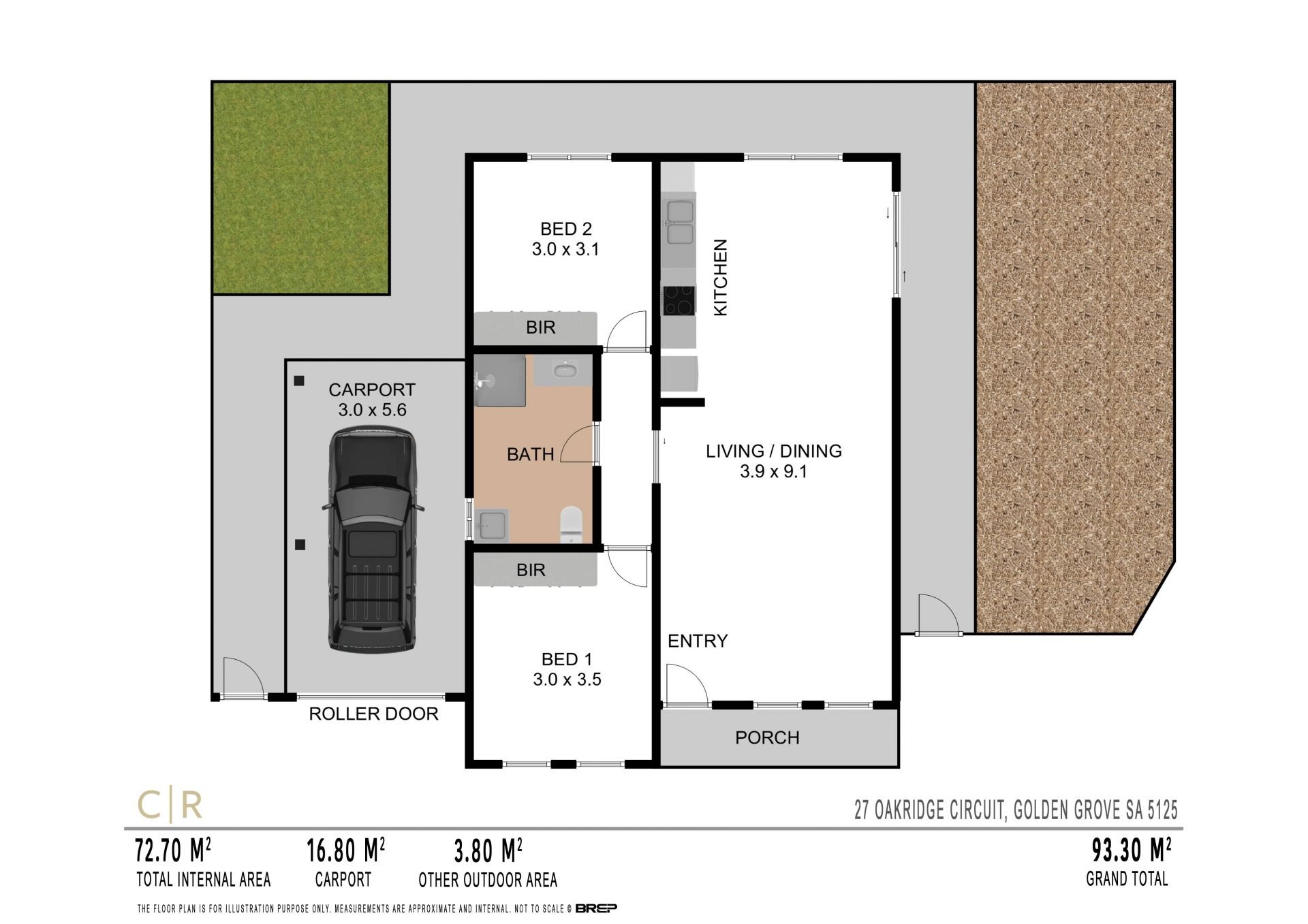 * Single carport with auto door and space for another in front of the roller door