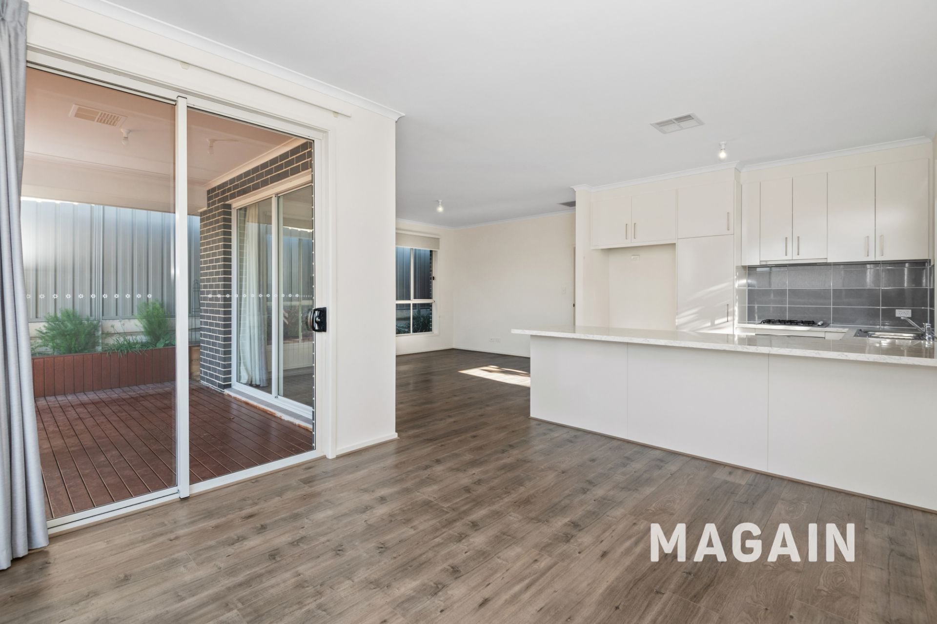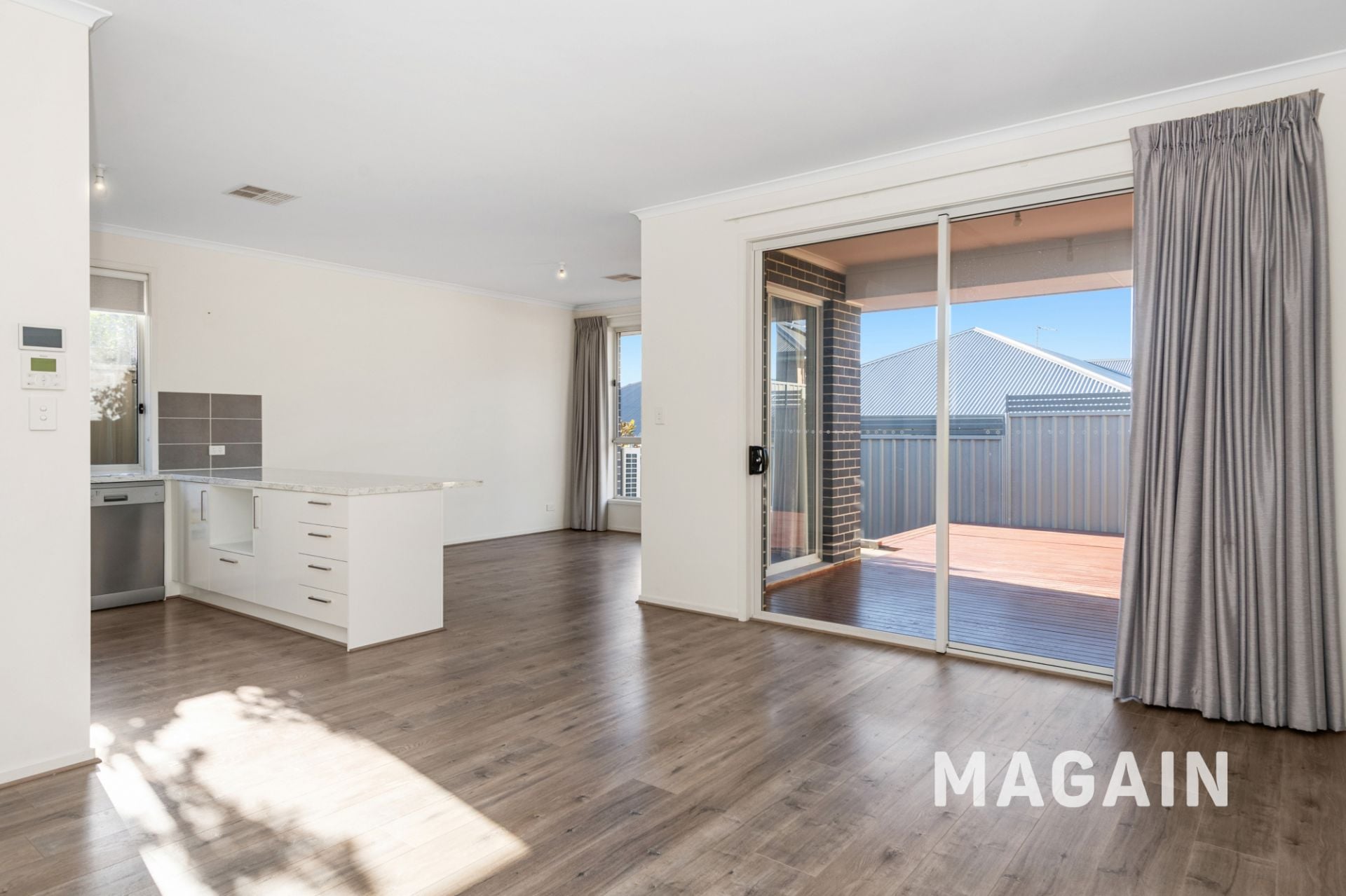 > Open plan kitchen, dining and living area