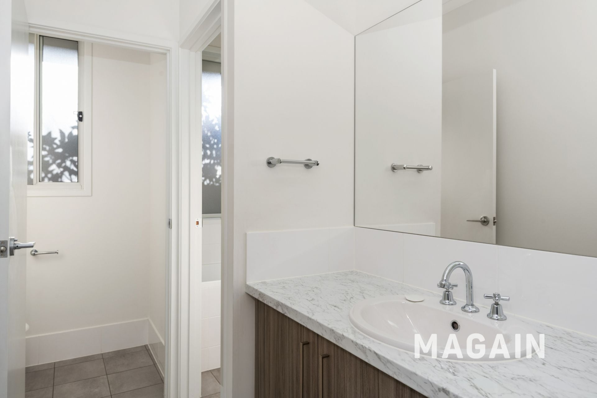 > Neat and airy bathroom with separate toilet