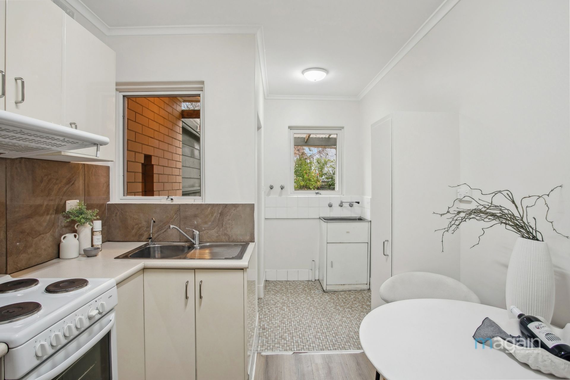 For added convenience, the property features its laundry adjacent to the kitchen.