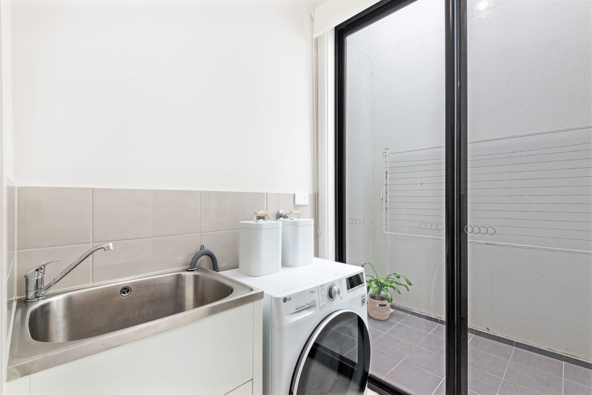 Outside, a paved entertaining area invites you to relax or host guests, with beautifully landscaped gardens creating a serene backdrop. The secure, low-maintenance yard provides space to unwind without the burden of extensive upkeep. Additional features include a single garage with internal access, roller shutters for added security and insulation, gas instantaneous hot water, and a rainwater tank.