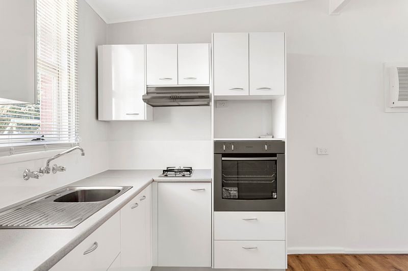 > modern kitchen with gas cook top and electric oven