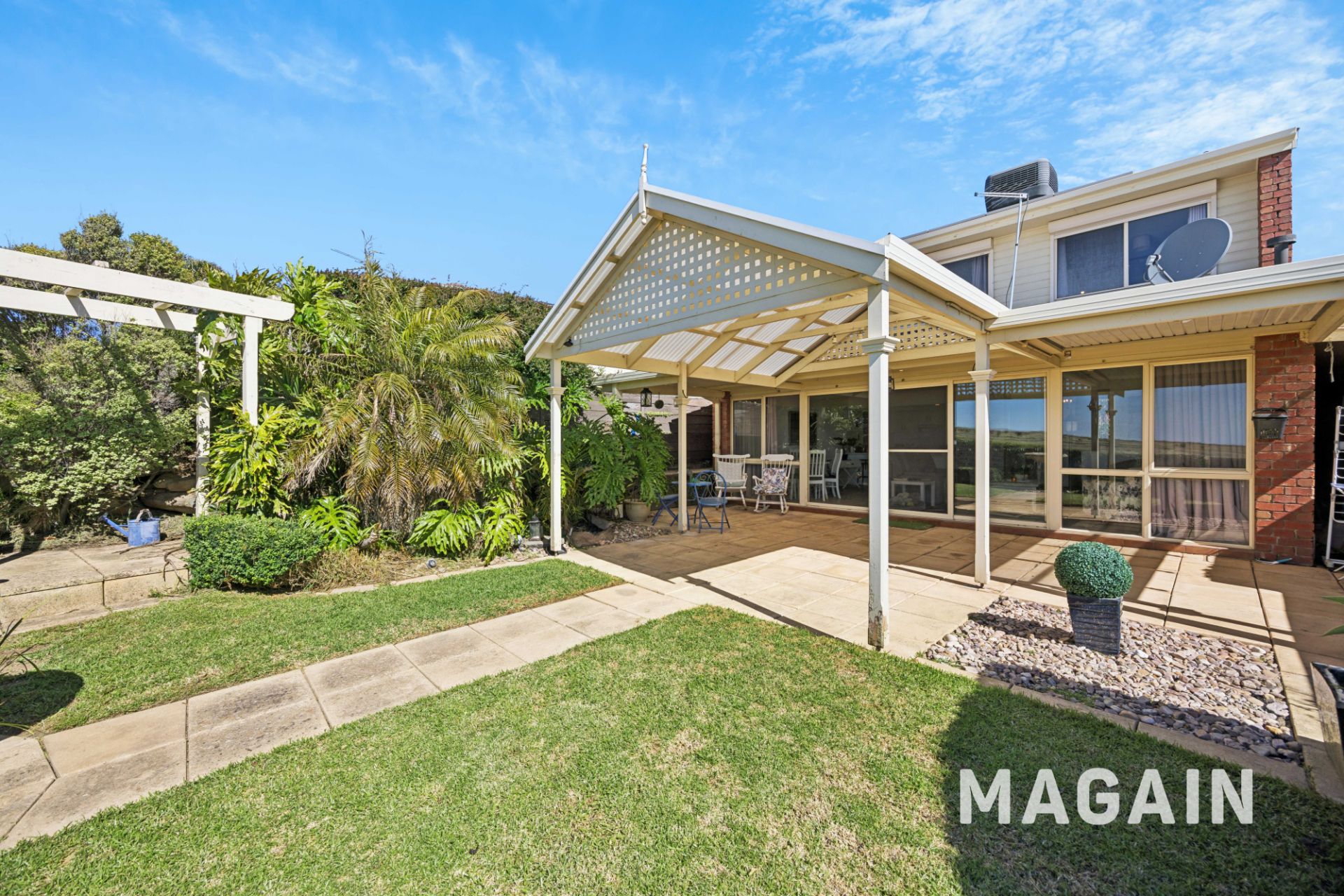 All three bedrooms are generously sized, offering excellent flexibility for families, guests, or a work-from-home setup. The single garage plus additional off-street parking adds convenience, and the outdoor pergola area is ideal for entertaining or simply unwinding with a sea breeze.
