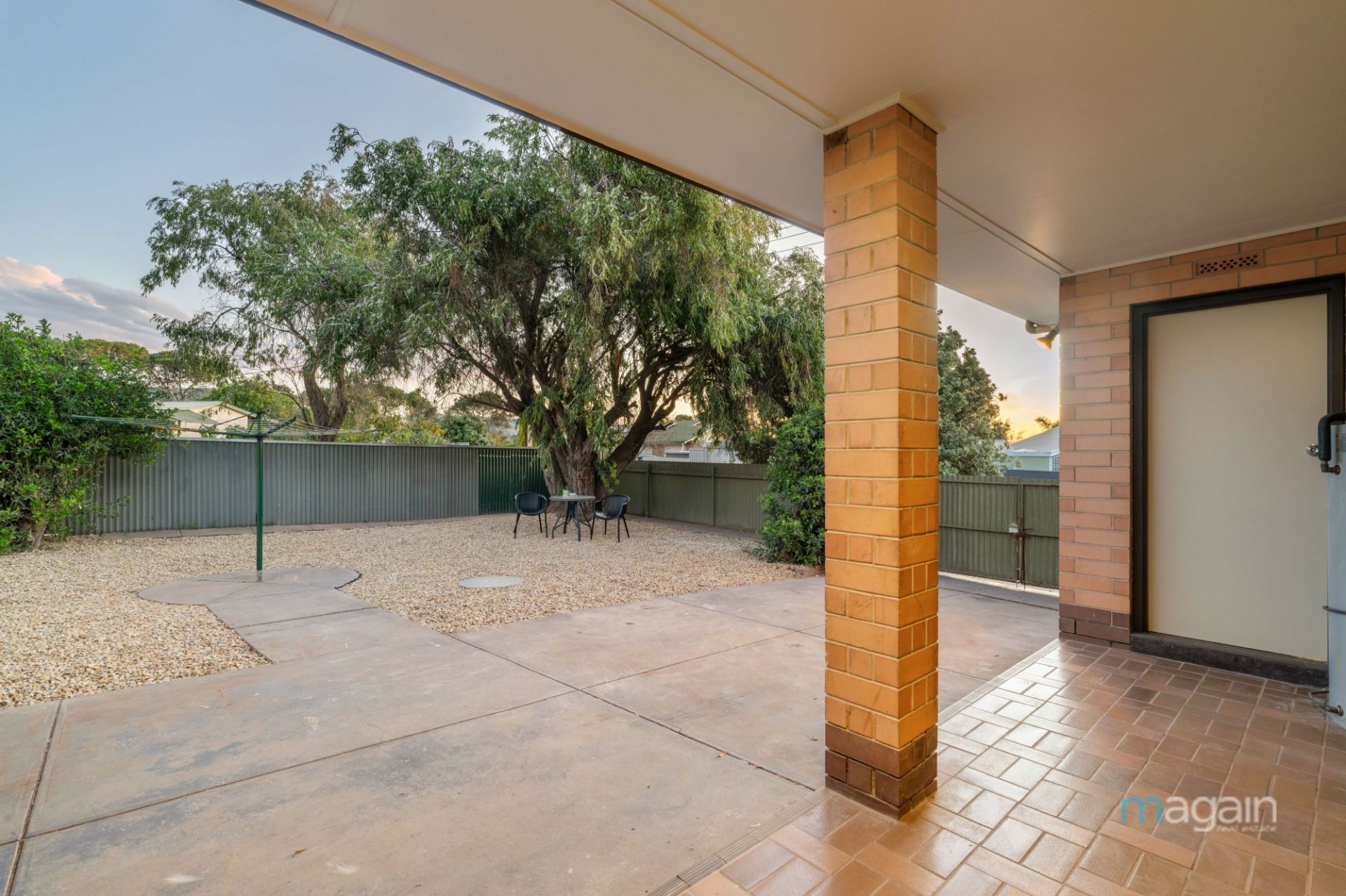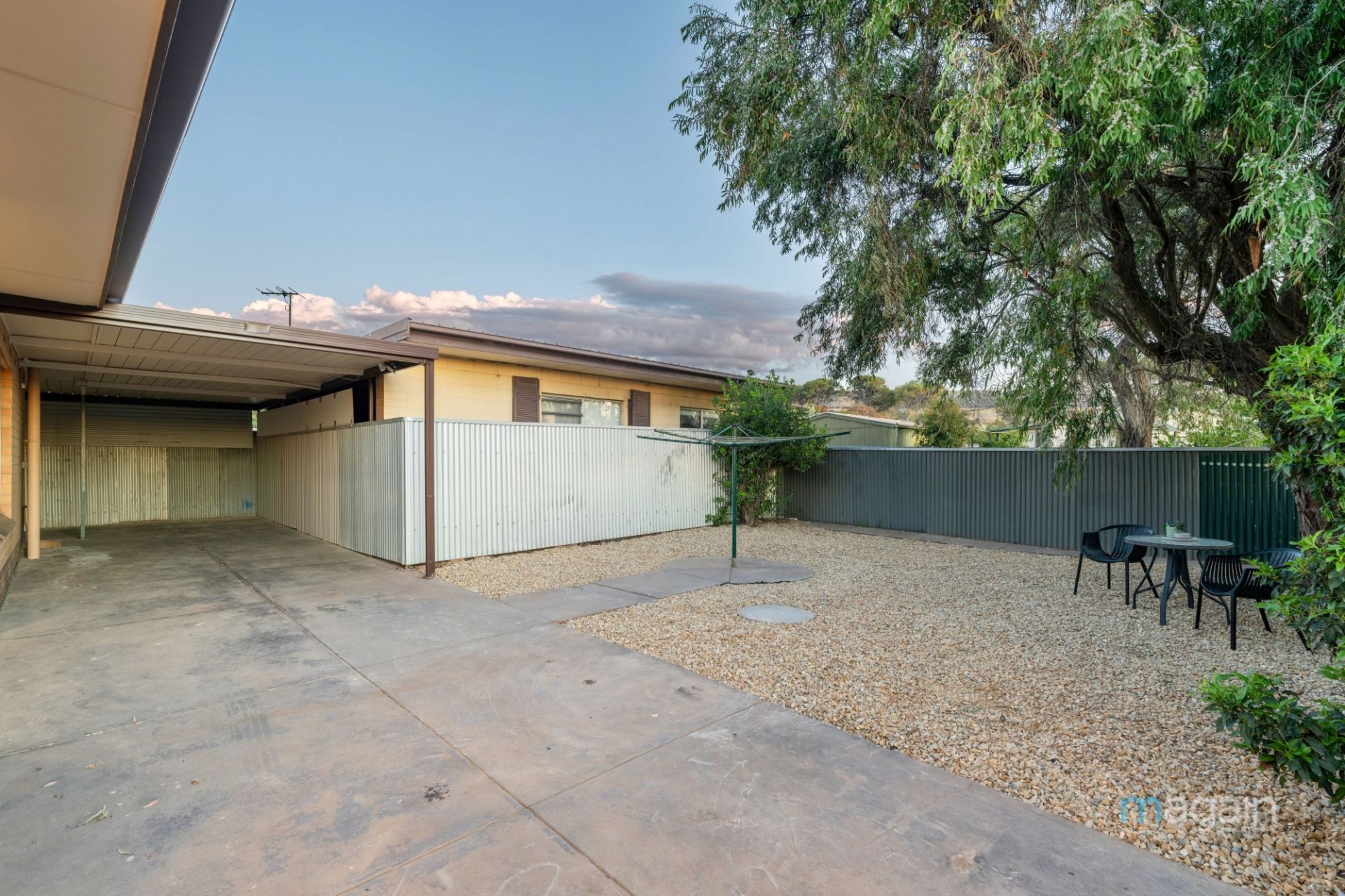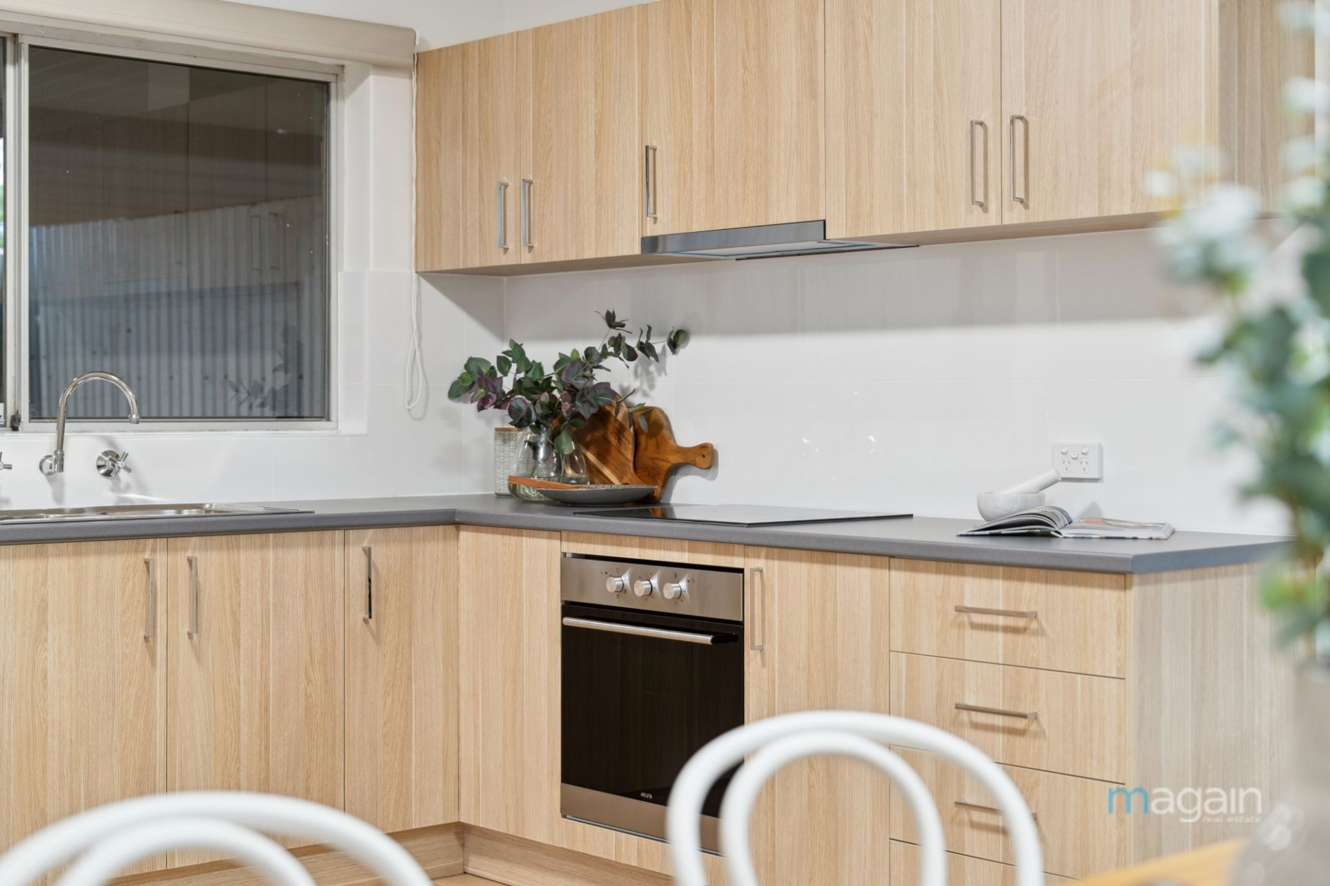 Outside, the low-maintenance rear yard provides ample space, and the side gates offer drive-through access to a carport, ideal for additional storage or parking.