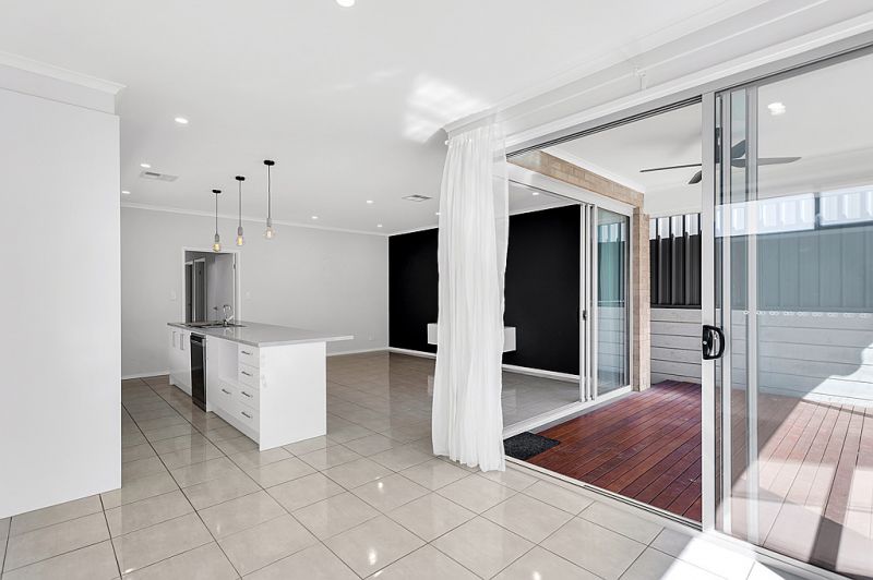 > modern open plan kitchen, dining and lounge areas