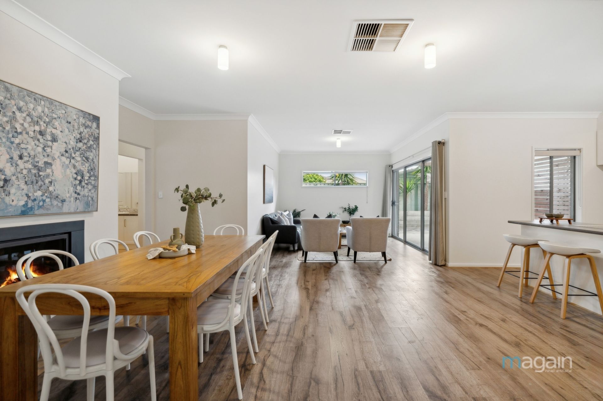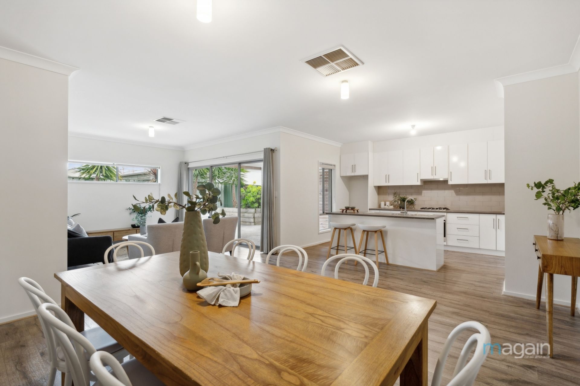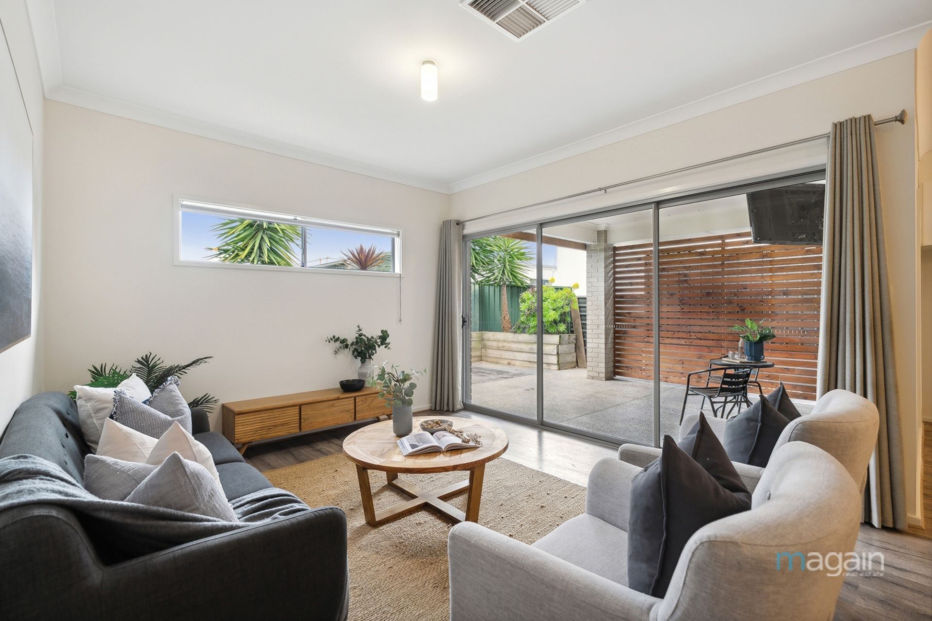 Seamlessly connecting the indoors with the outdoors, large sliding doors open to the alfresco area, designed for year-round entertaining. This outdoor space is as practical as it is beautiful, with low-maintenance landscaping and a grassed area.