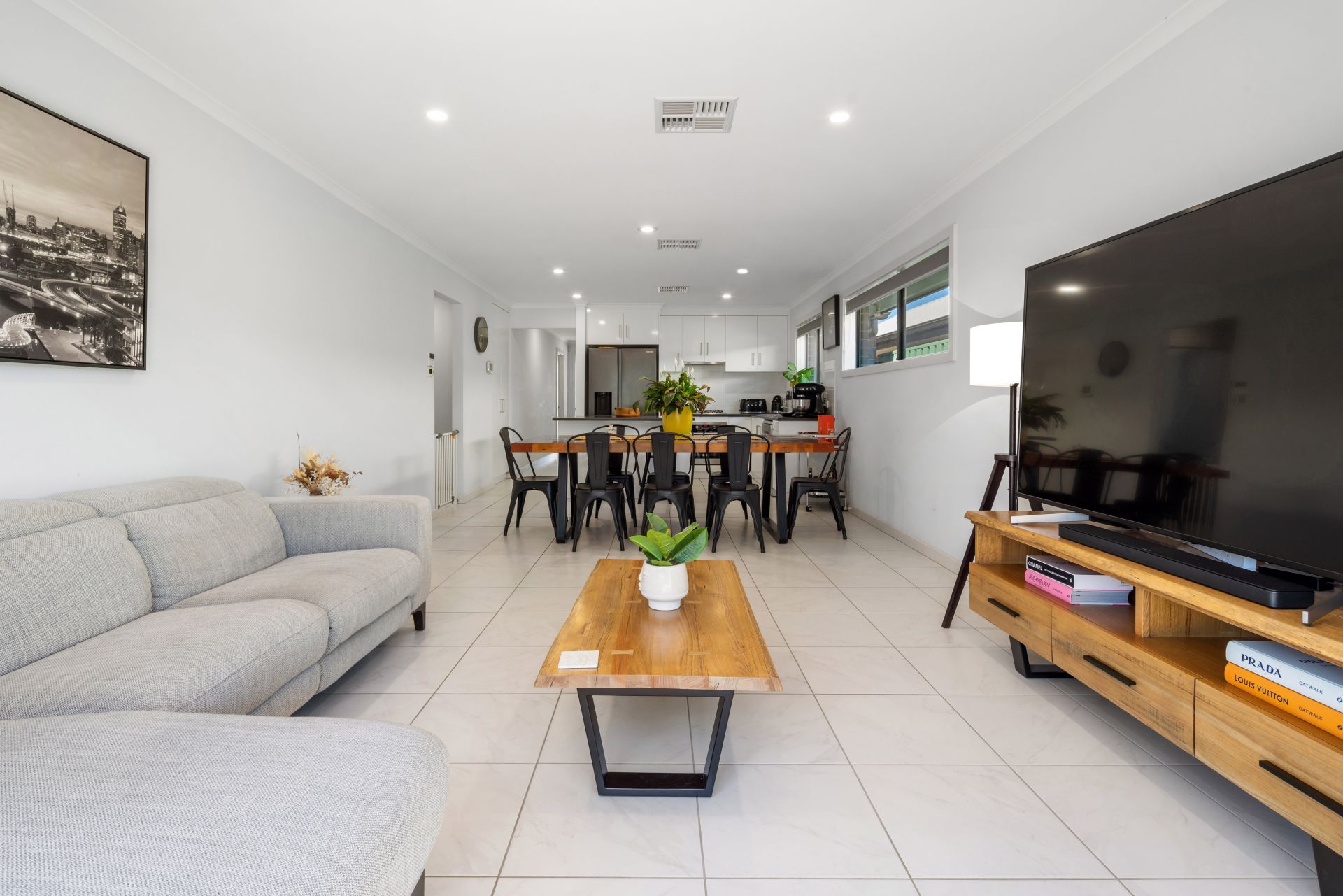 The open-plan living has glass sliding doors providing a picturesque view and seamless access to the split-level rear yard with a large paved area making it the ideal spot for entertaining family and friends.