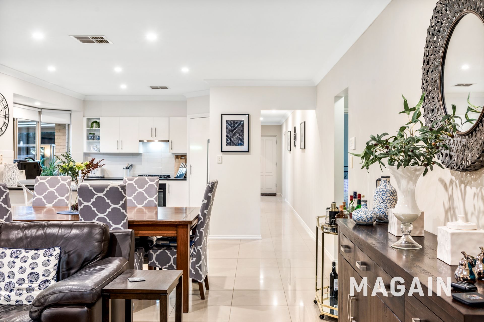 At the heart of the home, the kitchen, dining and family zone is designed for everyday ease and connection. The kitchen features a walk-in pantry, gas cooktop, electric oven and generous bench space, seamlessly overlooking the dining area and expansive family room, a layout that caters beautifully to both daily living and entertaining.