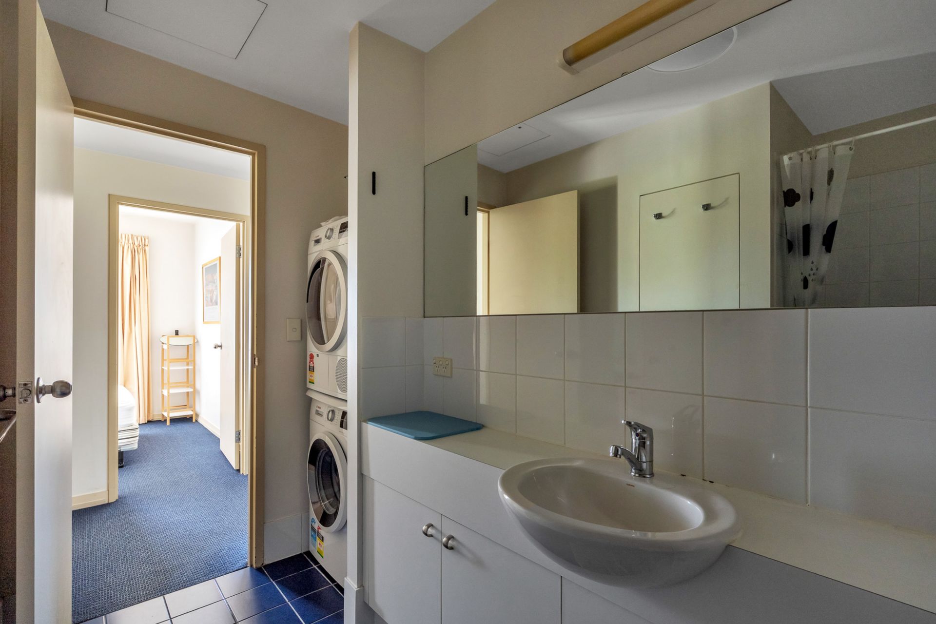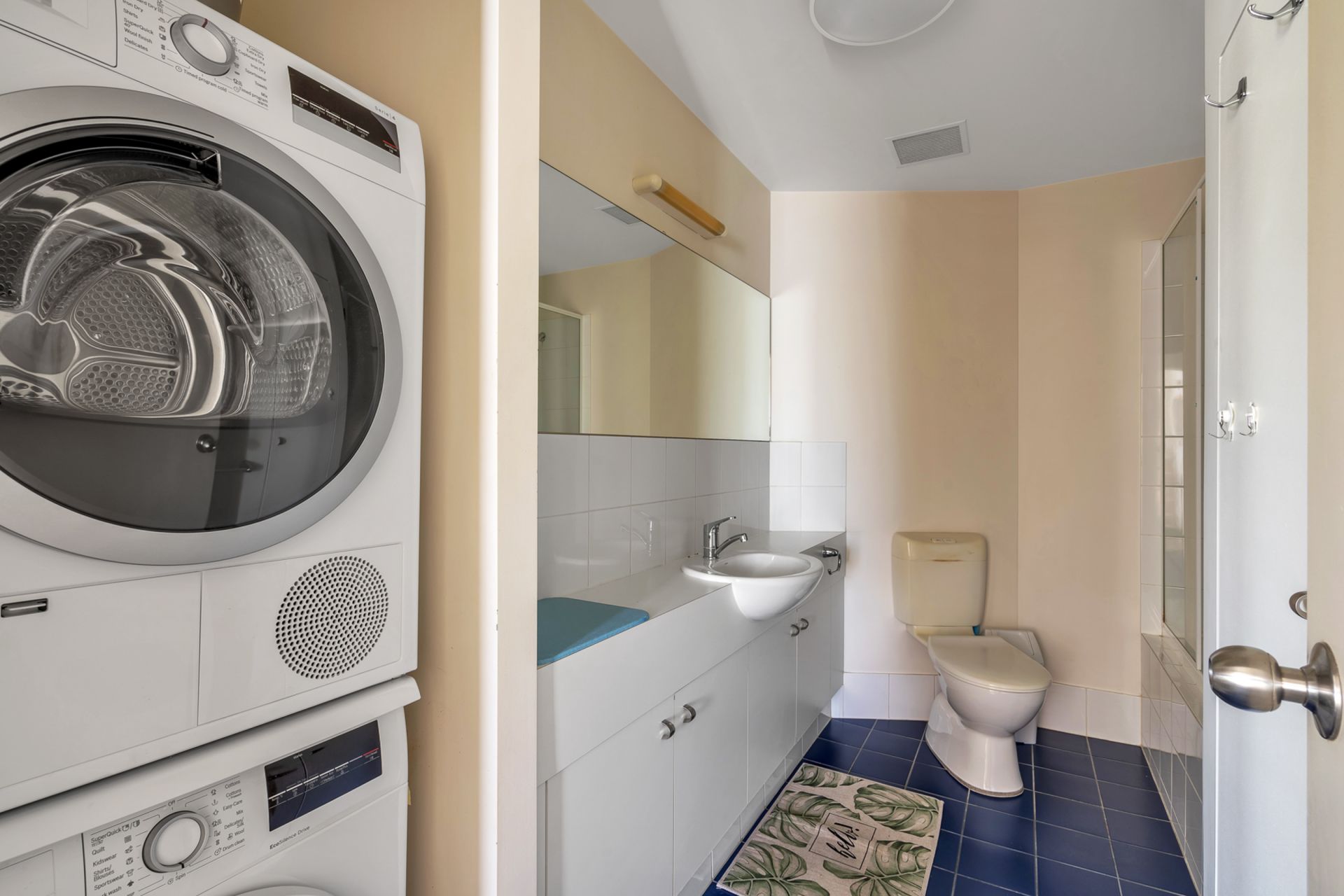 > Bathroom has bath / shower and a combination laundry with front load washer/ dryer for added convenience.
