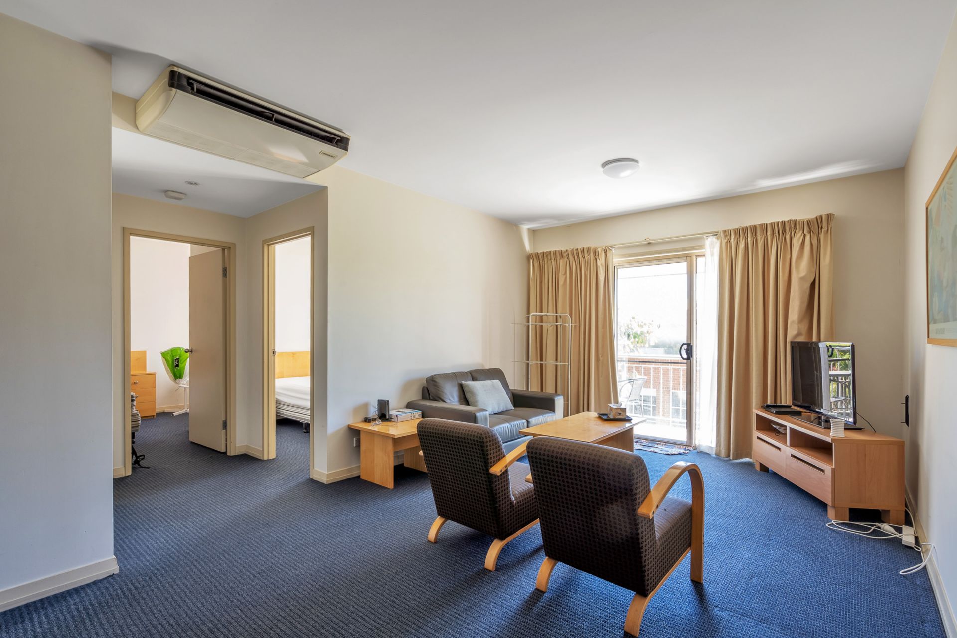 > North facing balcony filtering natural light into the living area.