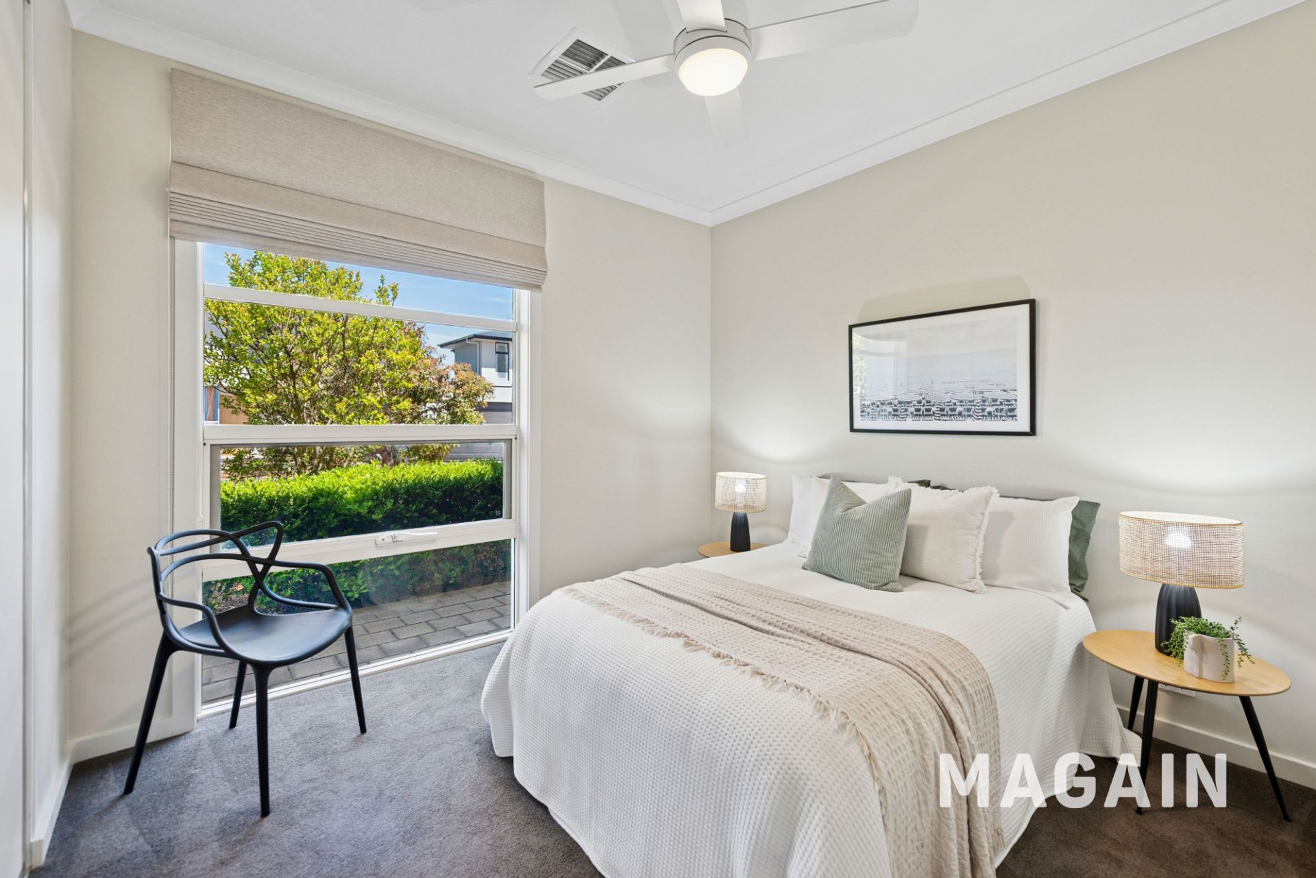 - All bedrooms are carpeted and feature ceiling fans