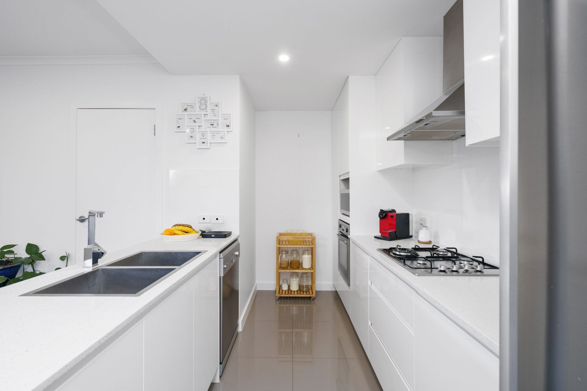 > kitchen with gas cooking, dish washer and plenty of storage and bench space