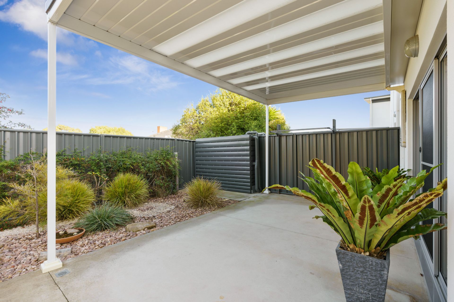 > low maintenance yards with undercover outdoor entertaining area