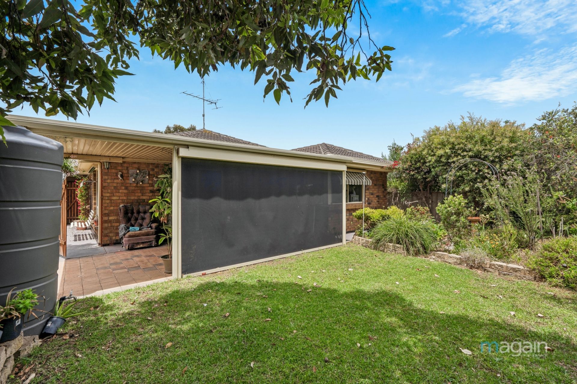 Enjoy the outside undercover entertaining / BBQ pergola area with pull down blinds for comfort and easy care gardens with shrubs throughout the yard. Complete with rain water for the gardens and Solar electricity..