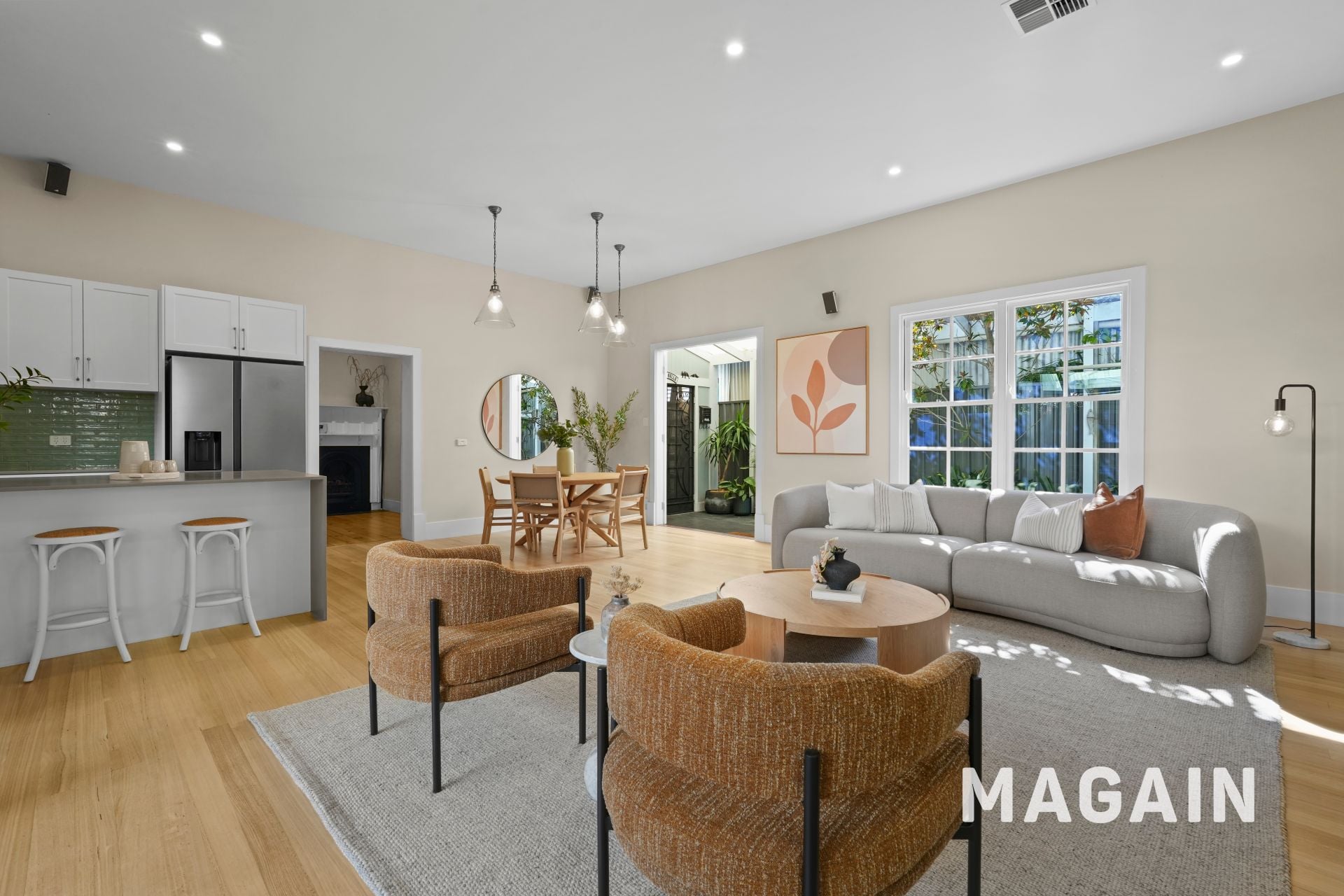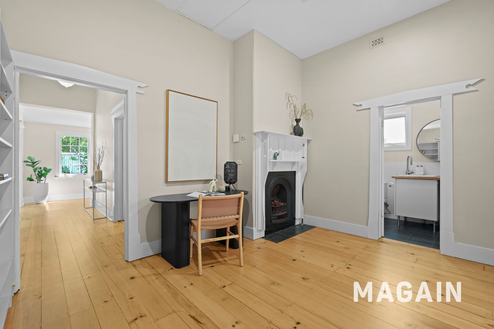 The flexible floorplan offers four generous bedrooms, including one with a cleverly concealed hidden ensuite tucked behind built-in robes. A central character room with a working fireplace offers a wonderful sense of versatility - ideal as a formal dining room, study or second living space.