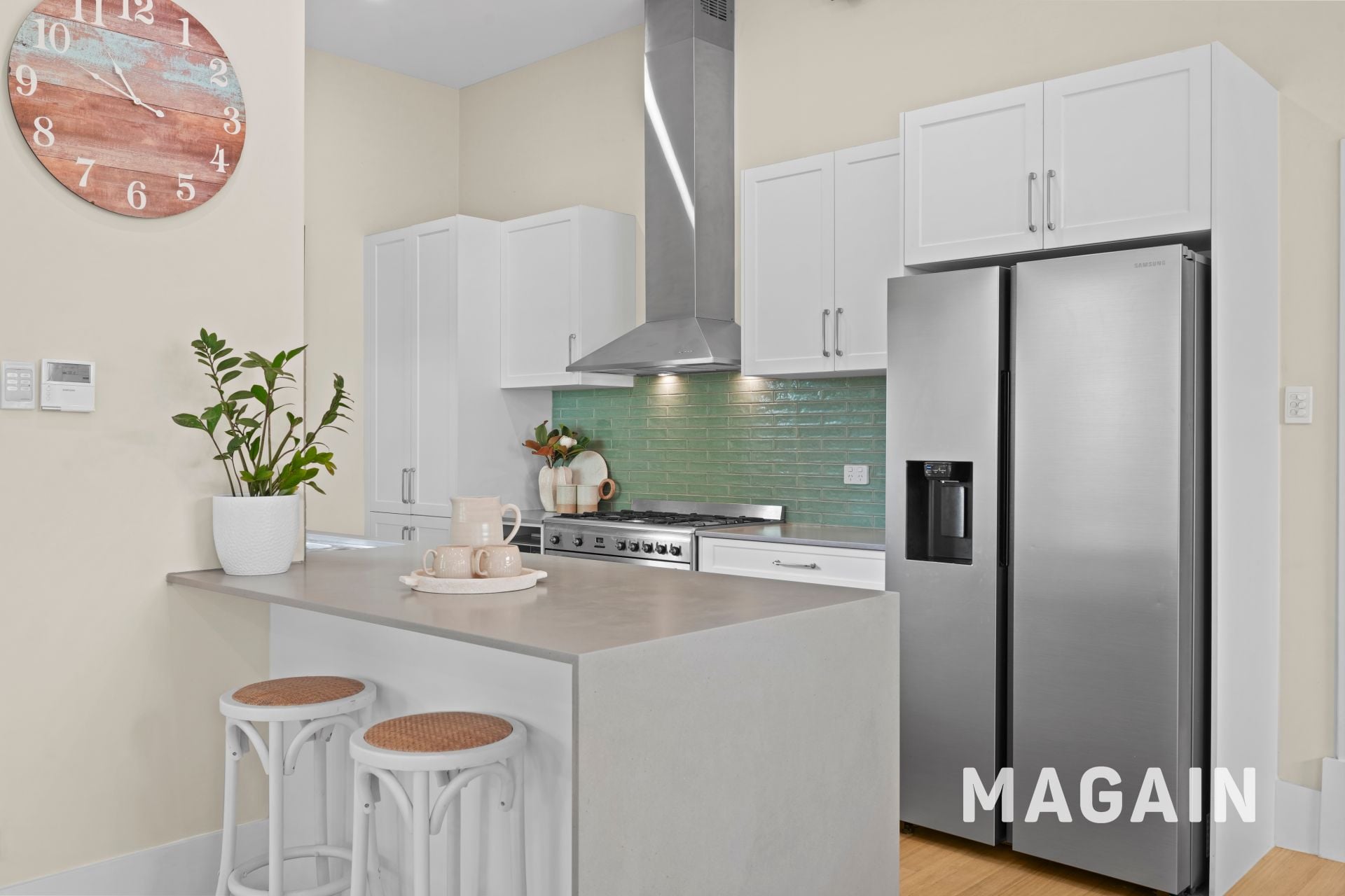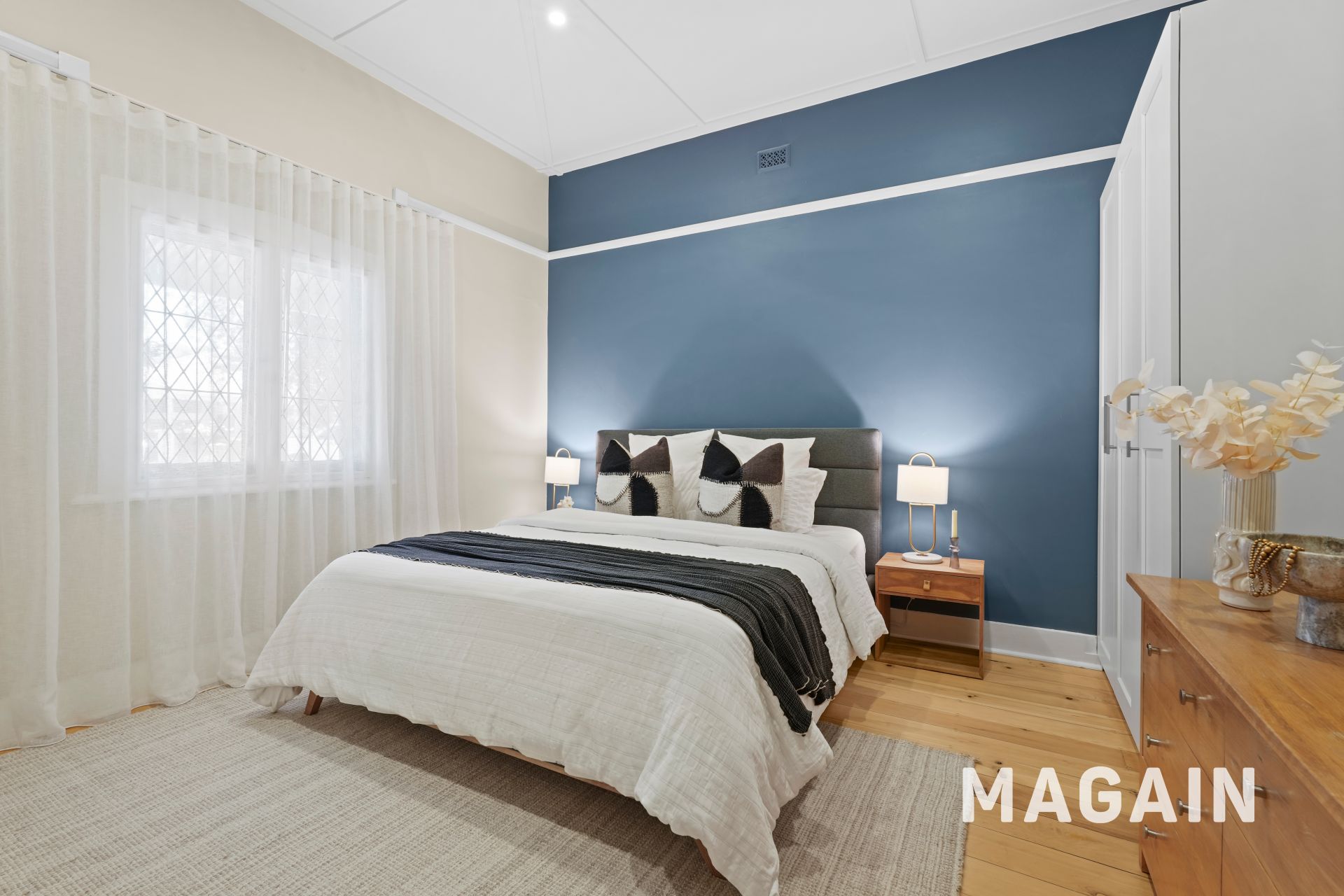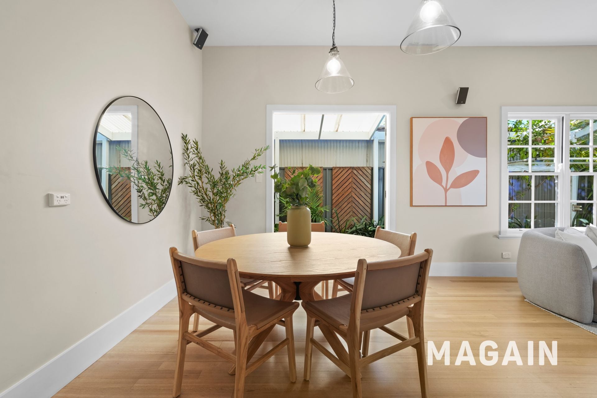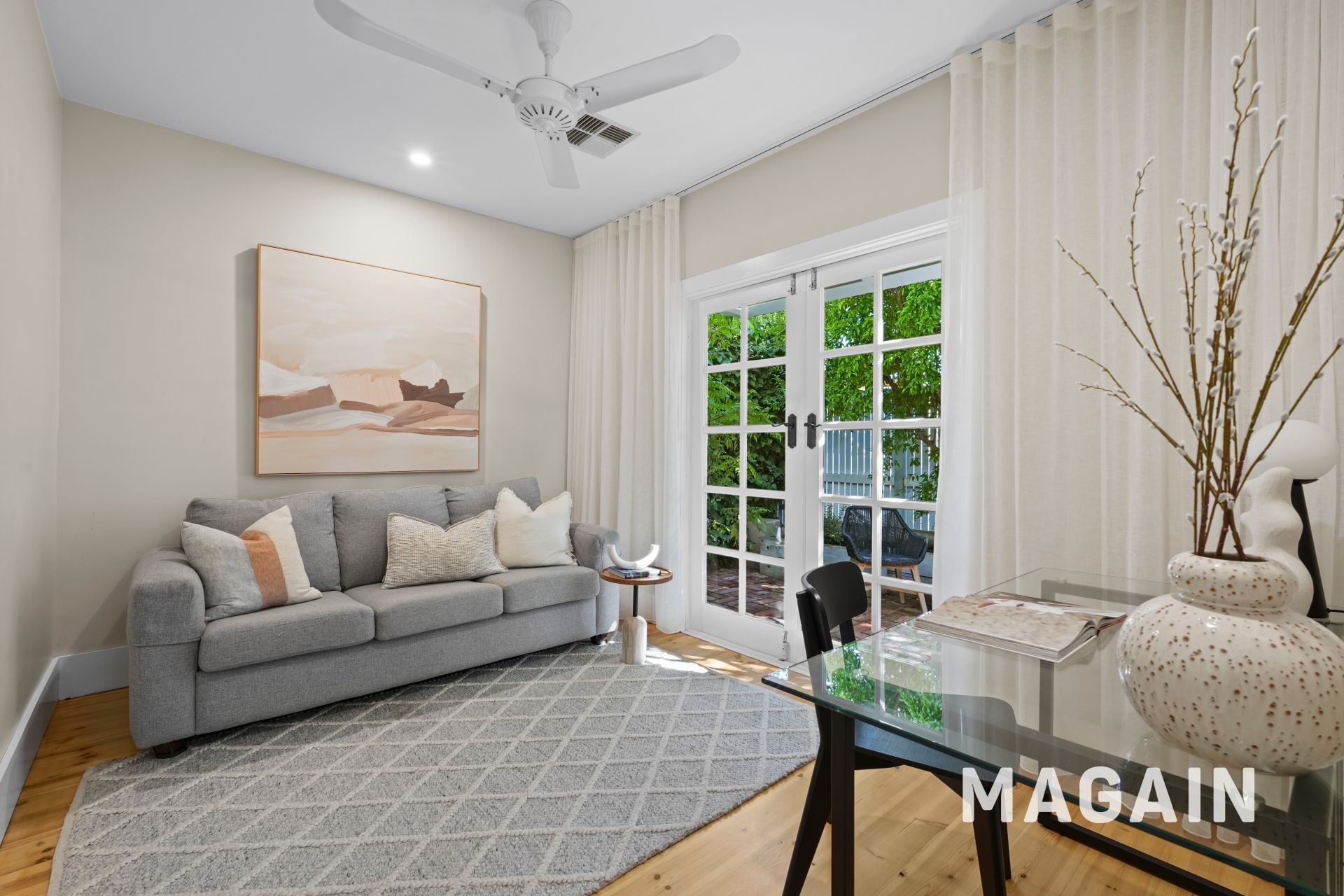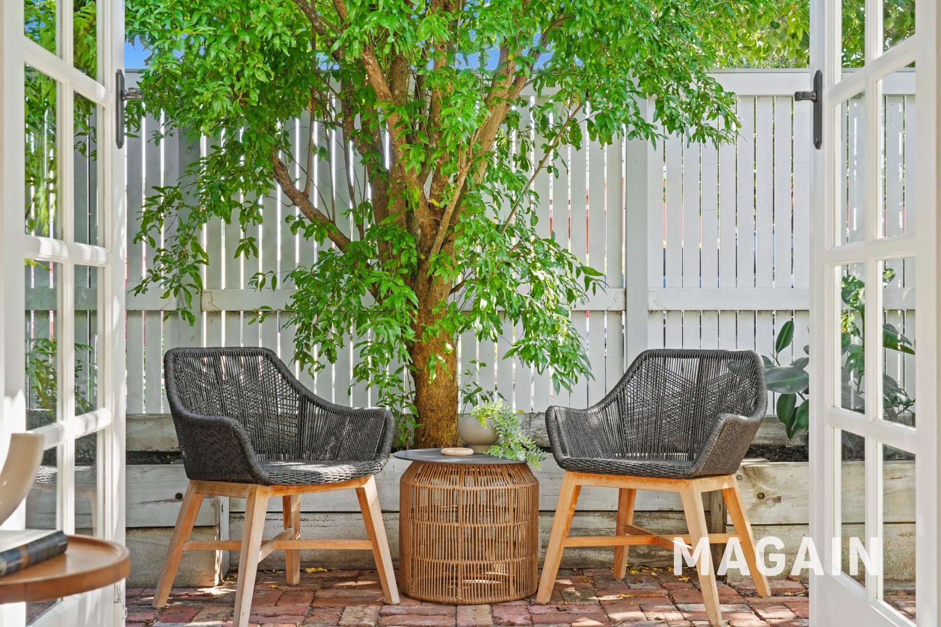 At the front of the home, French doors open to a charming red-brick courtyard, enclosed by white slatted fencing and perfectly positioned to capture warm northern sunshine. Morning coffee here quickly becomes a daily ritual, while evenings invite a quiet glass of wine in the sea breeze.