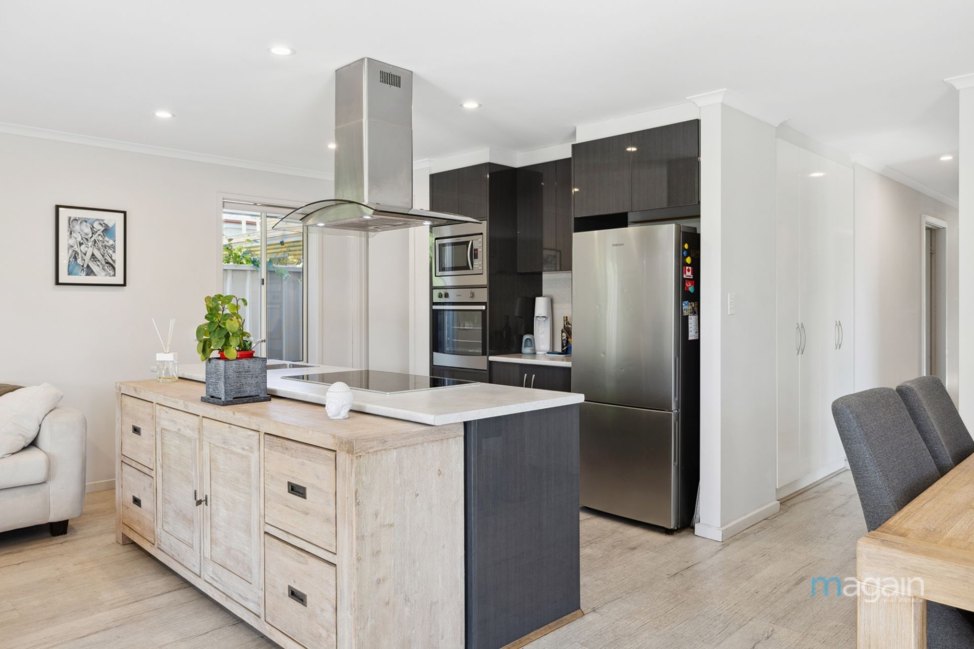 Open-Plan Living and Dining The heart of the home is the open-plan living and dining area, which exudes modern charm and functionality. The sleek, contemporary kitchen is equipped with plenty of bench space, making meal preparation and hosting effortless. The adjoining dining and living areas are perfect for family gatherings or entertaining guests, all while staying connected to the home's hub.
