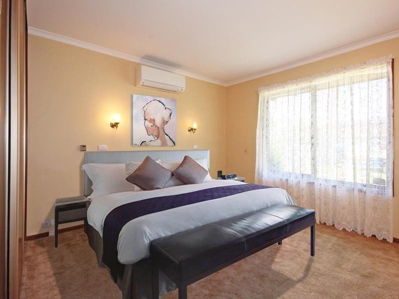 The master bedroom features a built-in robe for ample storage, while year-round comfort is ensured with split system heating and cooling, alongside ducted evaporative cooling. Outside, the property impresses with a carport offering drive-through access to a spacious shed equipped with power-a versatile space ideal for a workshop or additional storage needs. A separate toolshed, a rainwater tank, and an electric hot water system further enhance the property's practical appeal.