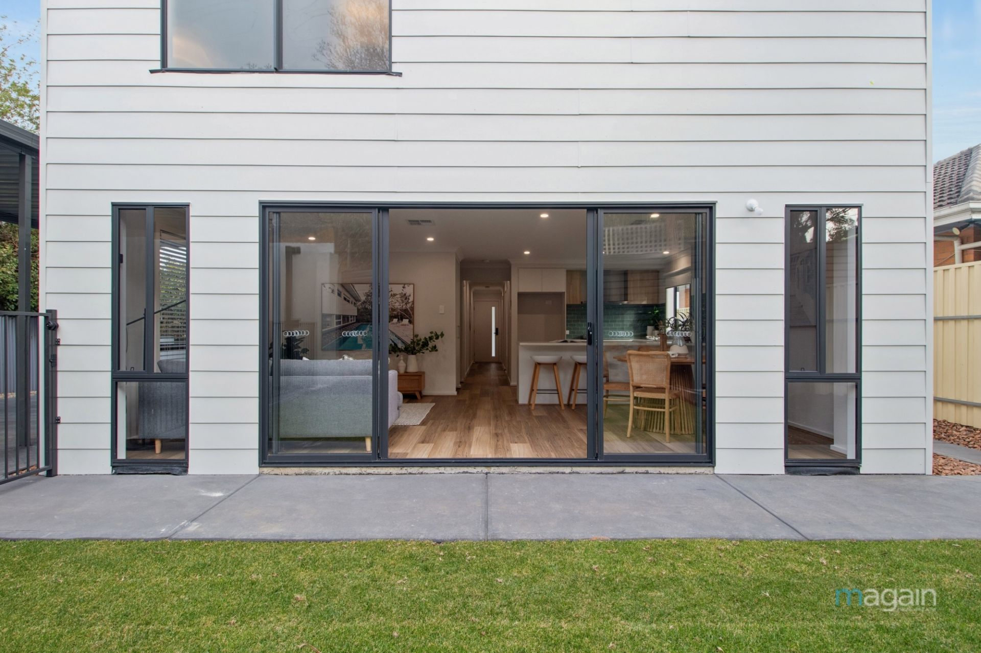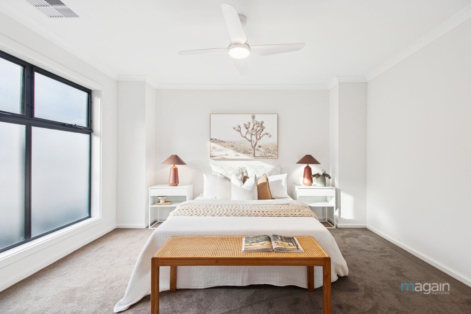 On the Downstairs level you'll love the gorgeous, well appointed and spacious kitchen. Cooking for the family or entertaining will be a breeze with the enormous island bench, 900mm oven, extra-large fridge space and dishwasher for easy clean-ups. The kitchen overlooks a light-filled living and dining space. Step outside big glass doors from the living area to a sweet little private garden with just enough lawn for kids and pets. On this level you'll also find a 4th bedroom and study, along with a bathroom, separate toilet and separate full laundry.