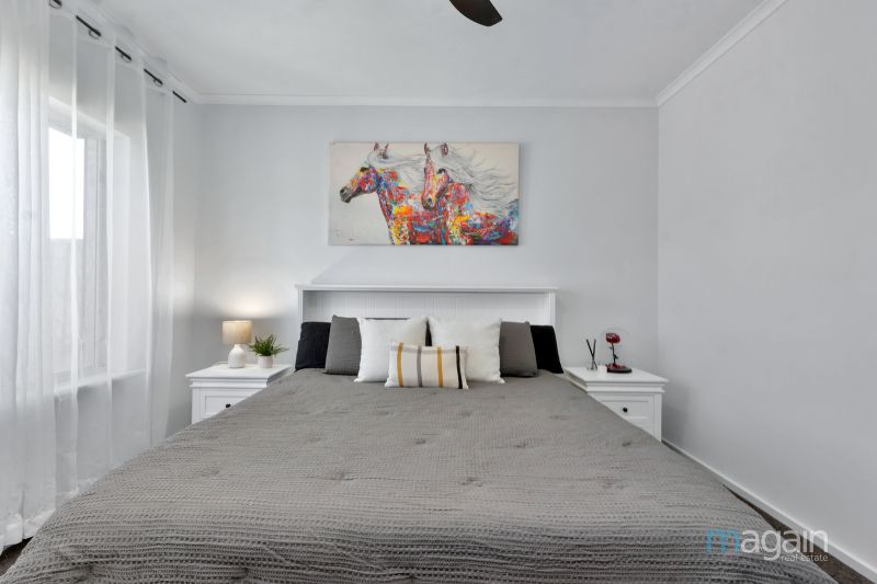 • Master bedroom with ceiling fan, feature double windows, ensuite and walk-in robe.